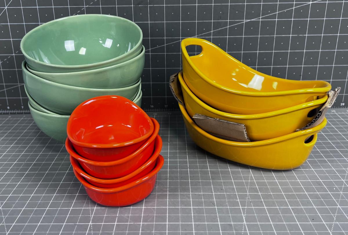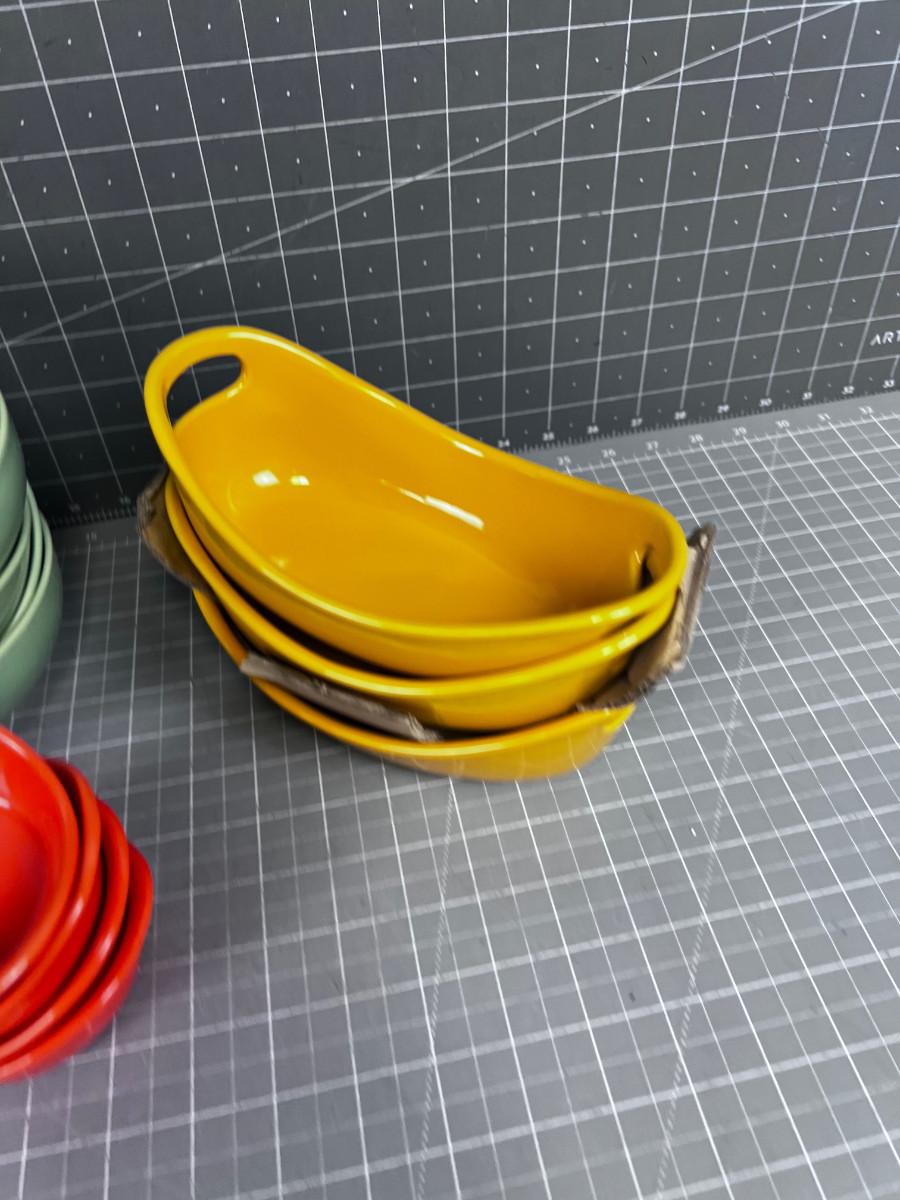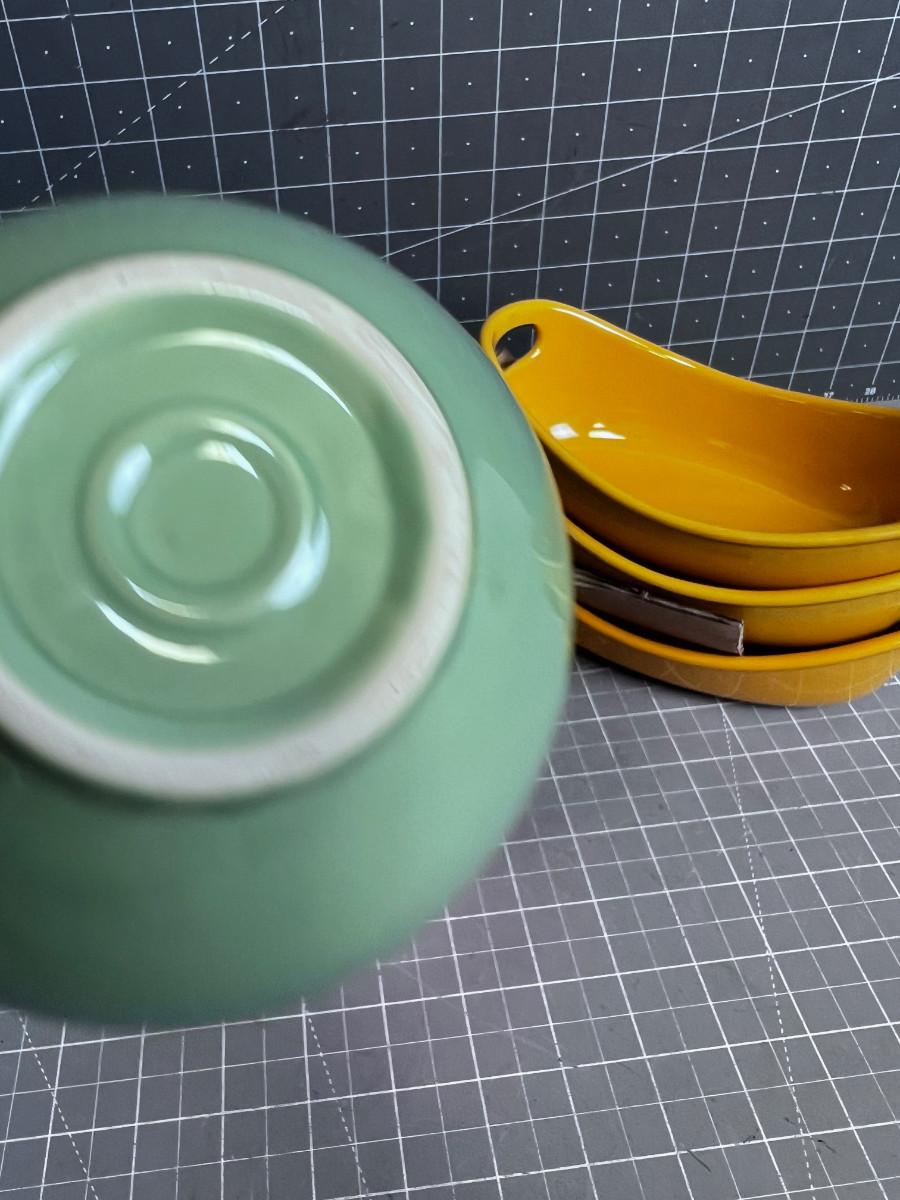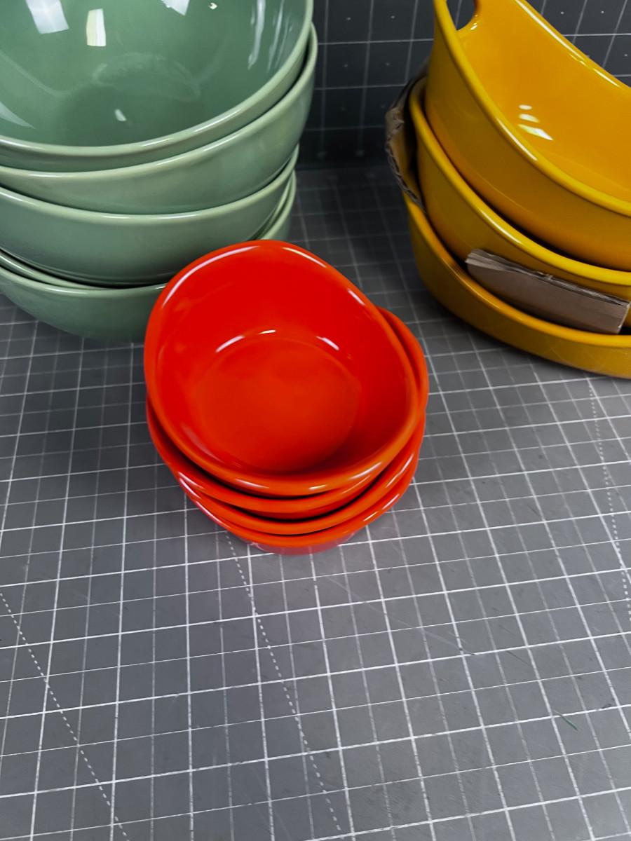 Colorful Bowls; Orange, Sage, Mustard Tones.