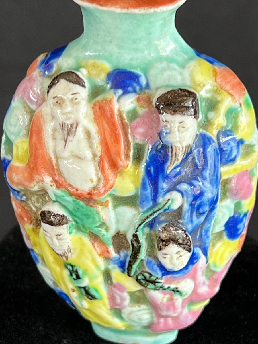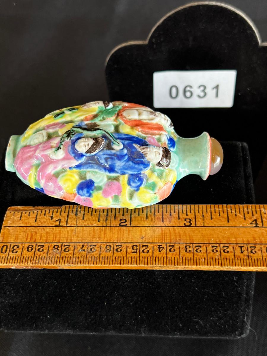Colorful Chinese Porcelain Snuff Bottle w Painted Figures