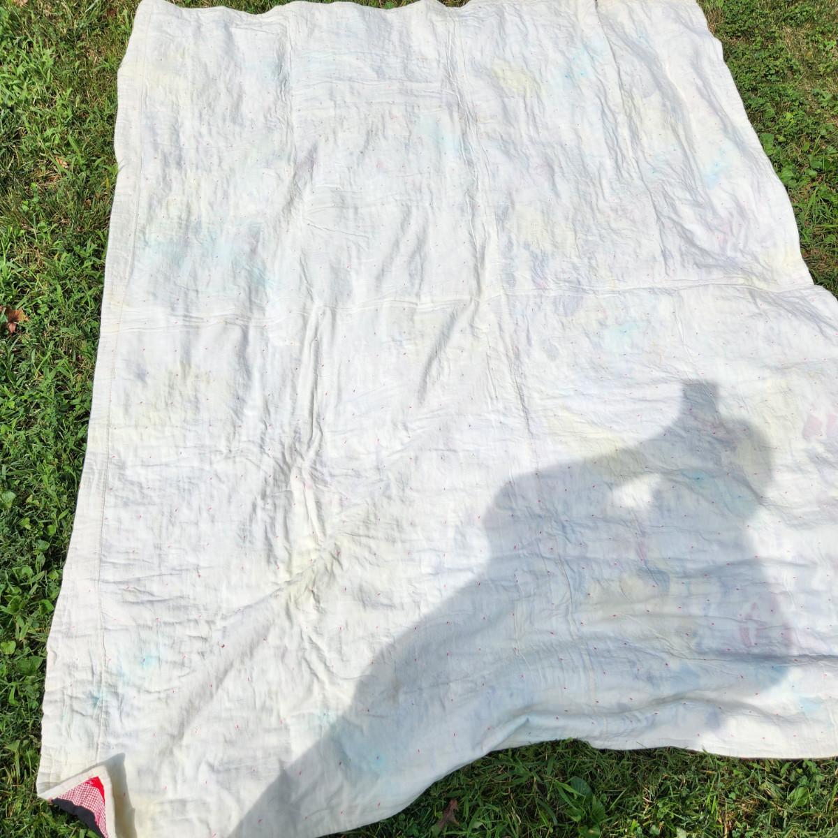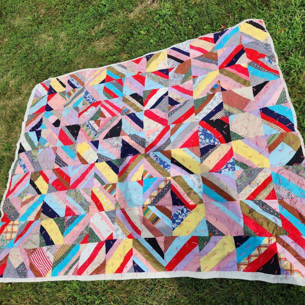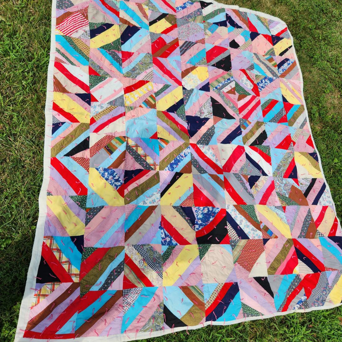 This auction lot is for a Colorful Crazy-Patch with Pigtails Quilt. This quilt is clean and ready for use. In nice condition. Straight from the cedar chest. Measures about 80X64-inches.