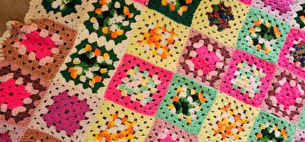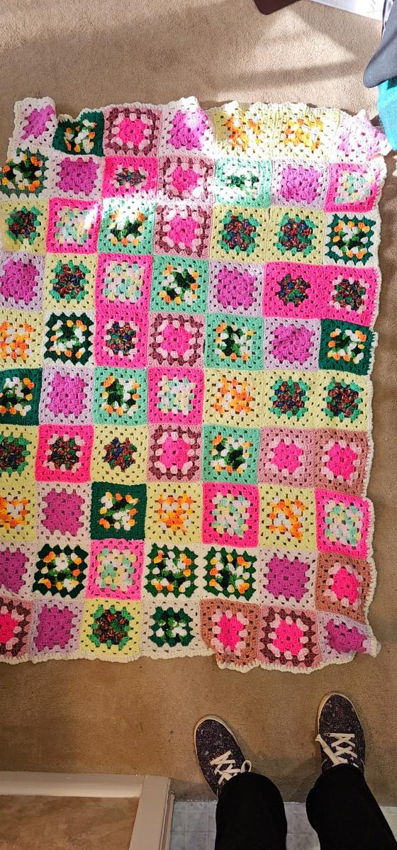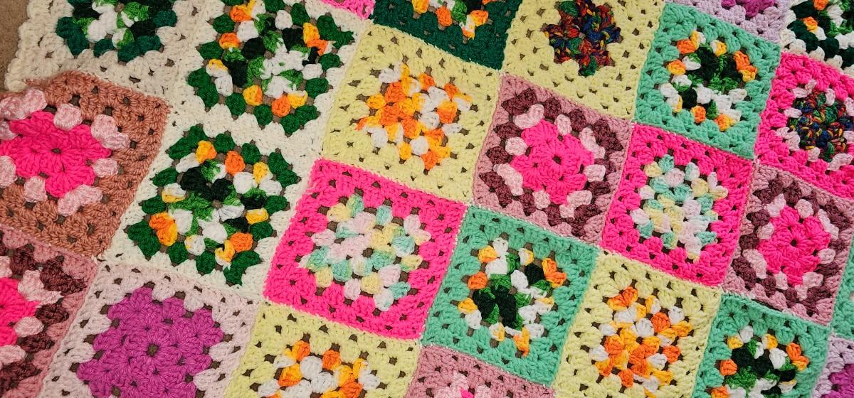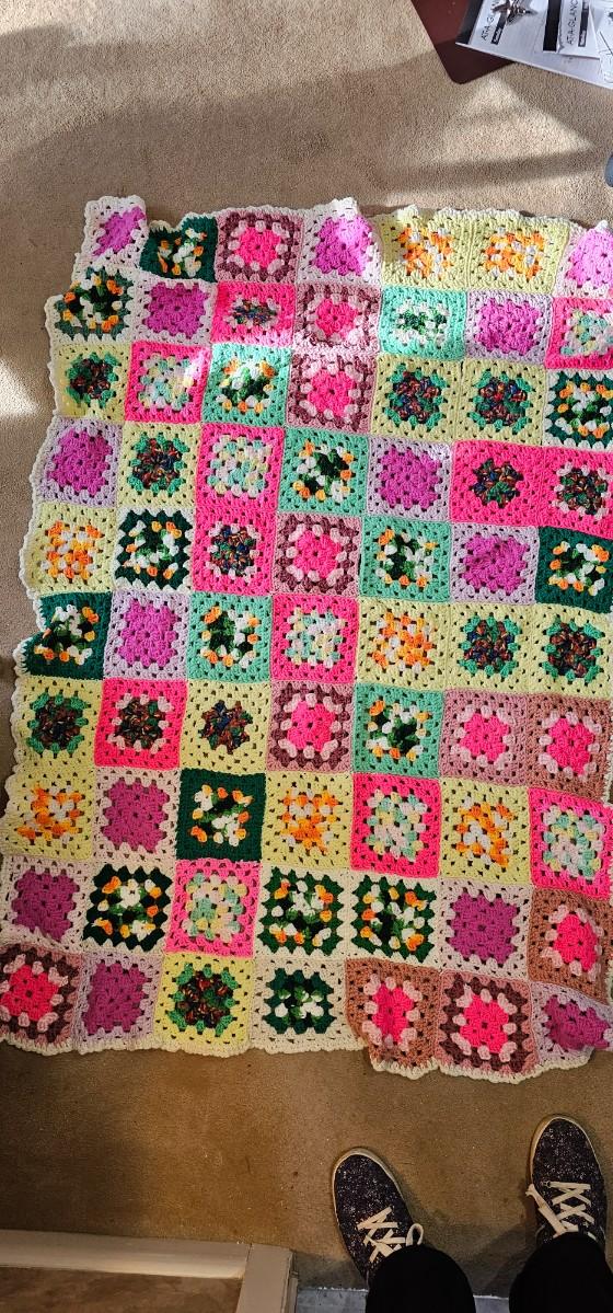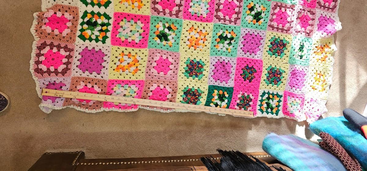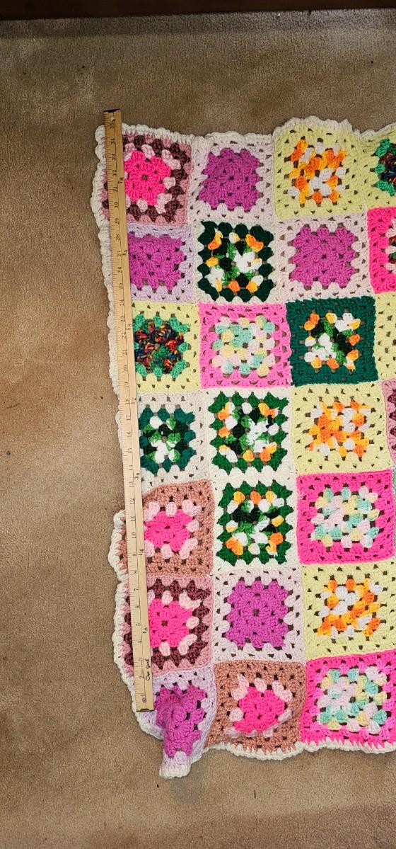COLORFUL crocheted throw 3' x 5'