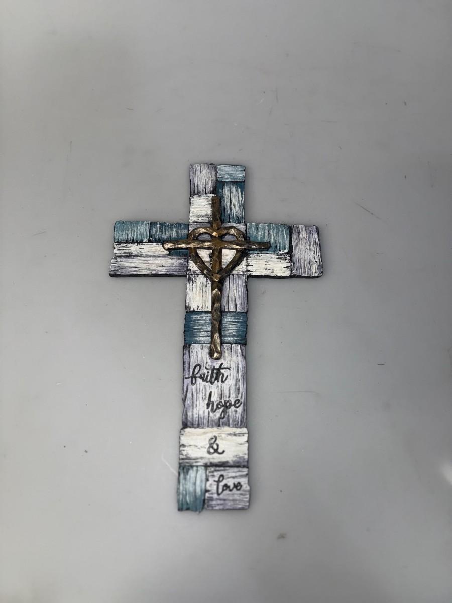 Colorful Cross with "faith, Hope, and Love" etched