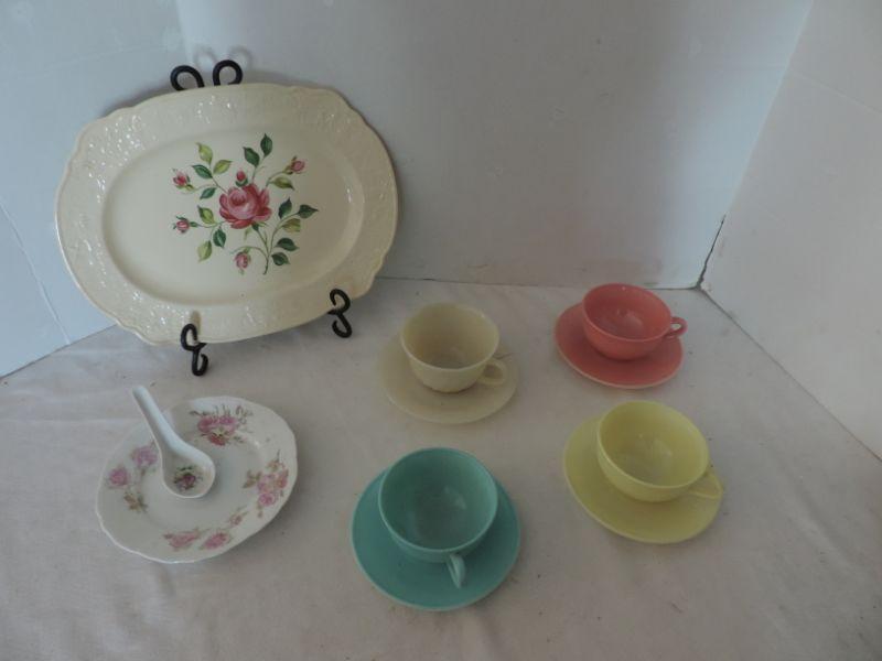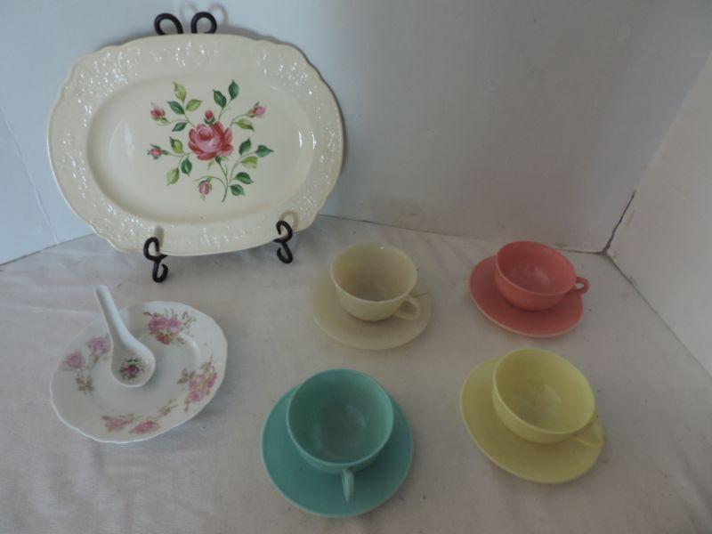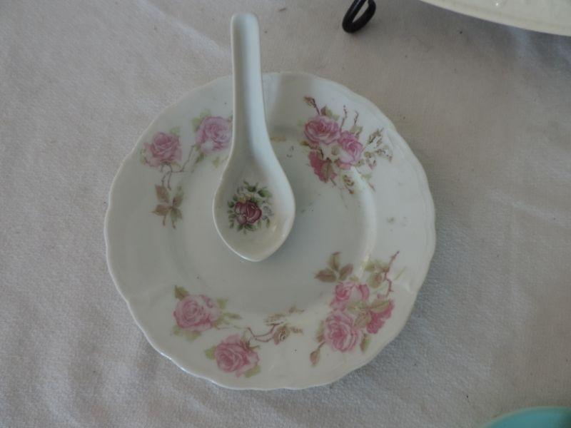 ROSE PLATER -CHINA PLATE AND SPOON-4 VINTAGE CUP AND MATCHING SAUCER