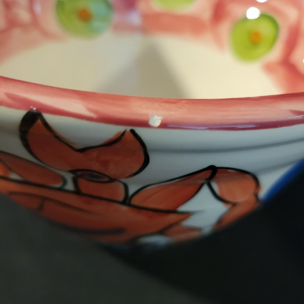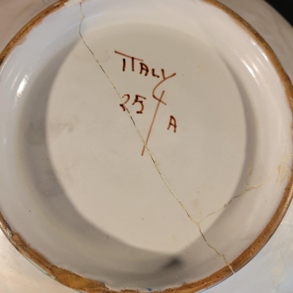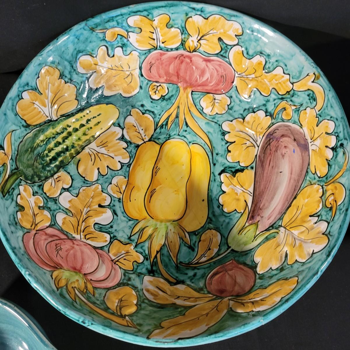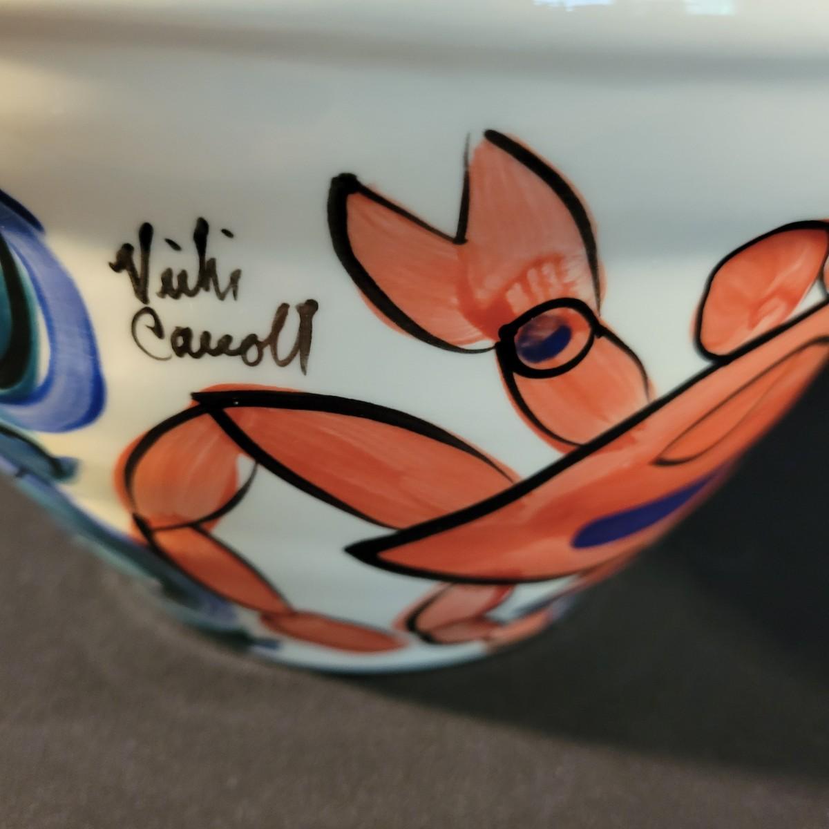 A collection of two large ceramic bowls and two smaller pieces of signed pottery. The two smaller bowls are in excellent condition and are signed and dated pieces. The bowl with the crab does have a small chip and the largest piece was broken into multiple pieces and repaired. See attached pictures for more details. Largest bowl measures approximately 12" x 4" Shipping available