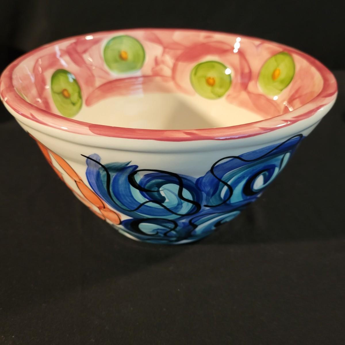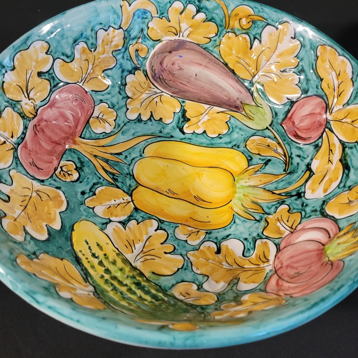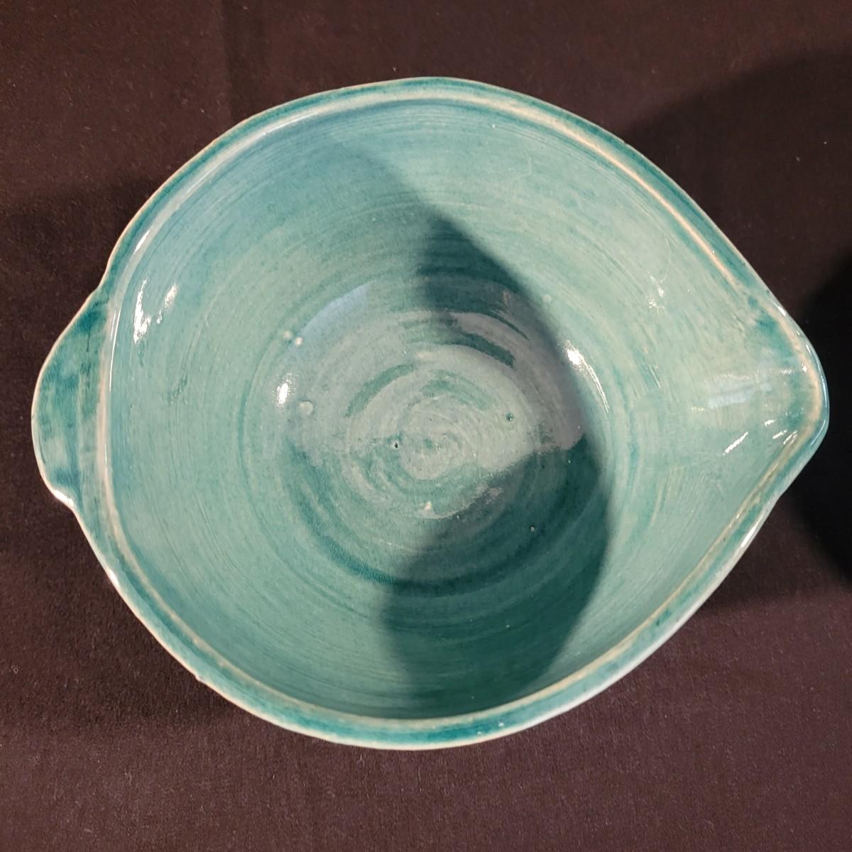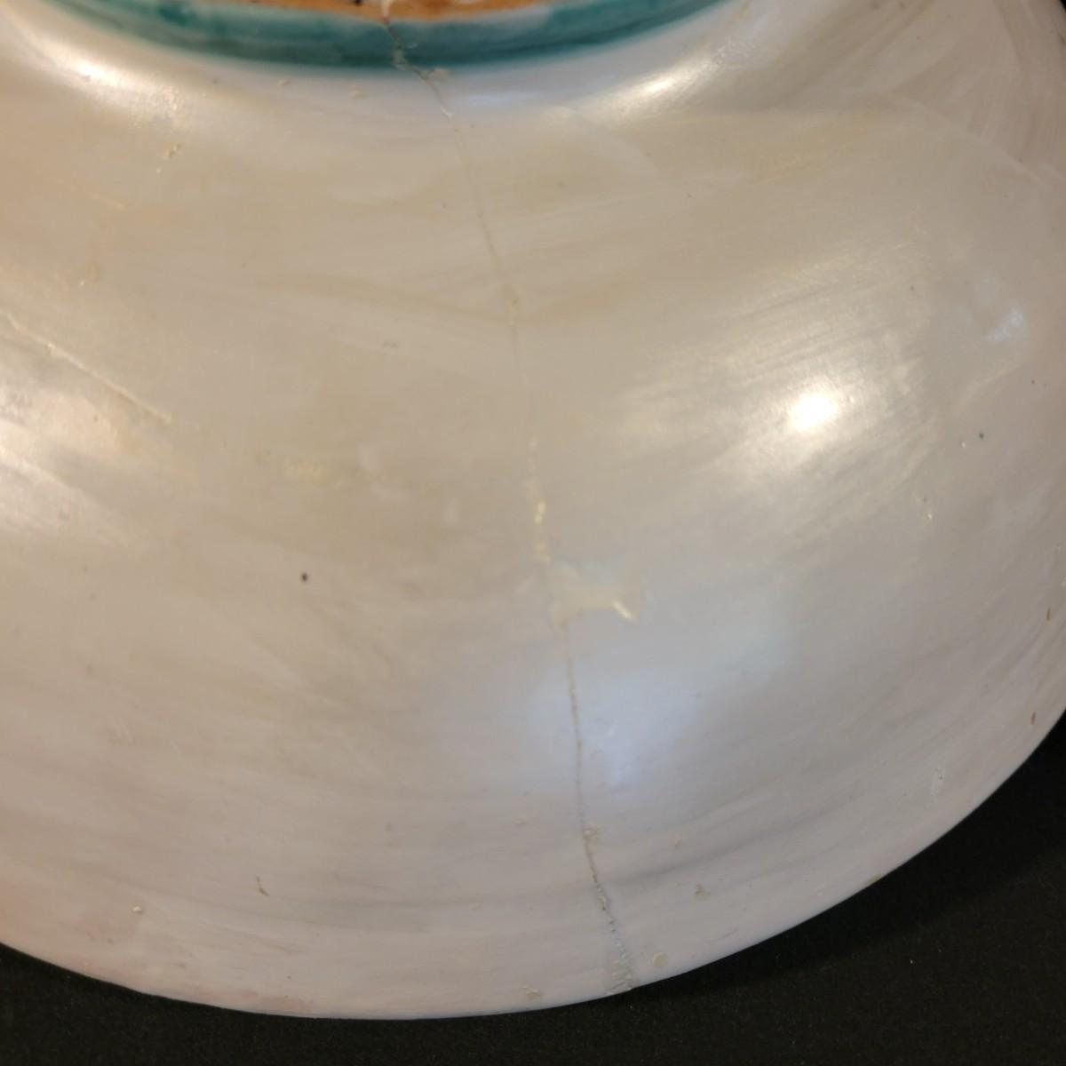 A collection of two large ceramic bowls and two smaller pieces of signed pottery. The two smaller bowls are in excellent condition and are signed and dated pieces. The bowl with the crab does have a small chip and the largest piece was broken into multiple pieces and repaired. See attached pictures for more details. Largest bowl measures approximately 12" x 4" Shipping available