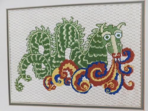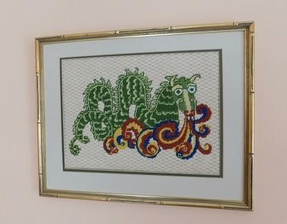 Colorful Dragon Cross Stitch Hanging Framed Wall Decor 20"x16"