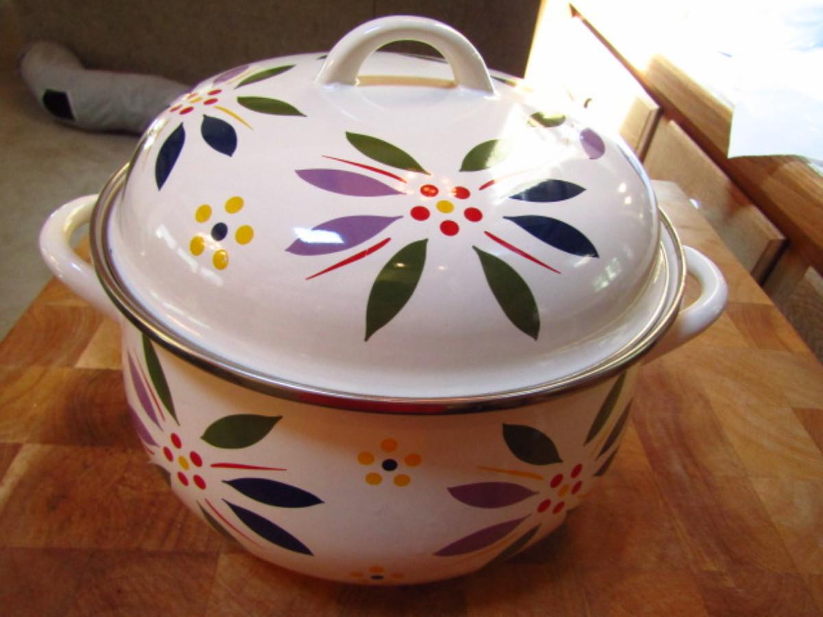 Colorful Enamel on Steel Stock Pot with Lid by Temp-tations by Tara