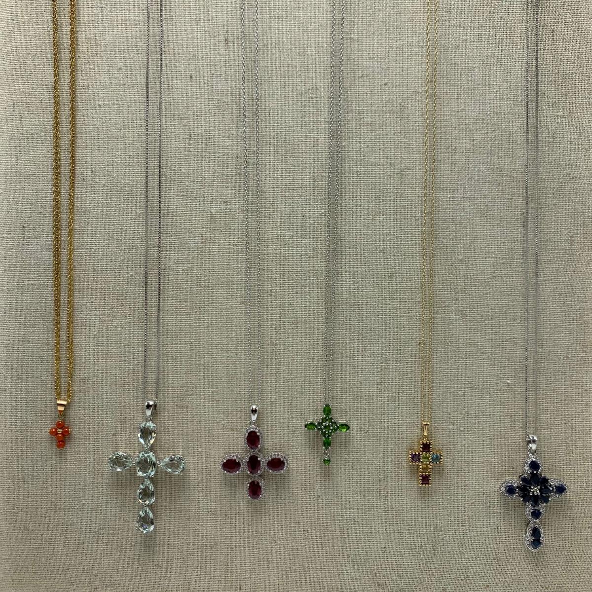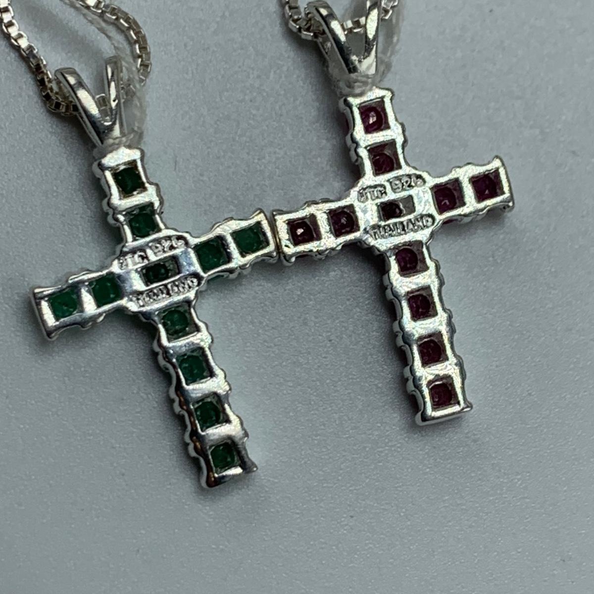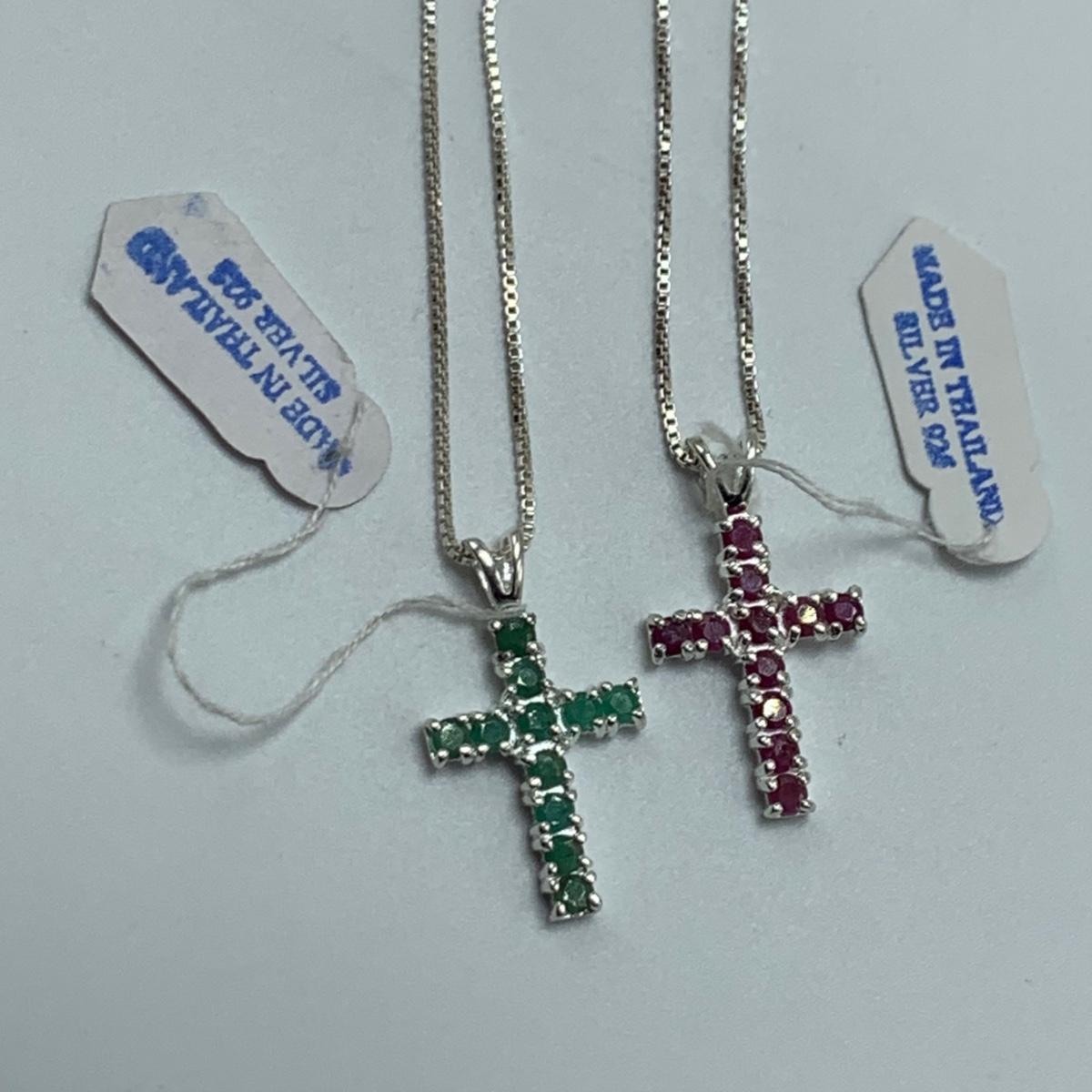 Colorful Gemstone Cross Pendants on 14K & 925 (B3-HS)
