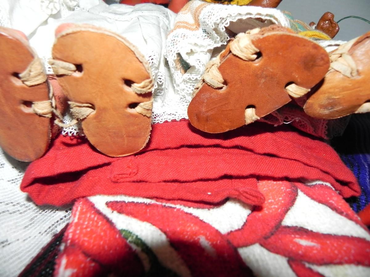 HAND MADE DOLLS WITH HAND STICHED LEATHER SHOES, BRAIDED HAIR....BRIGHT COLORFUL THROW-PIGGY BANK- SALT & PEPPER SHAKERS- MORE