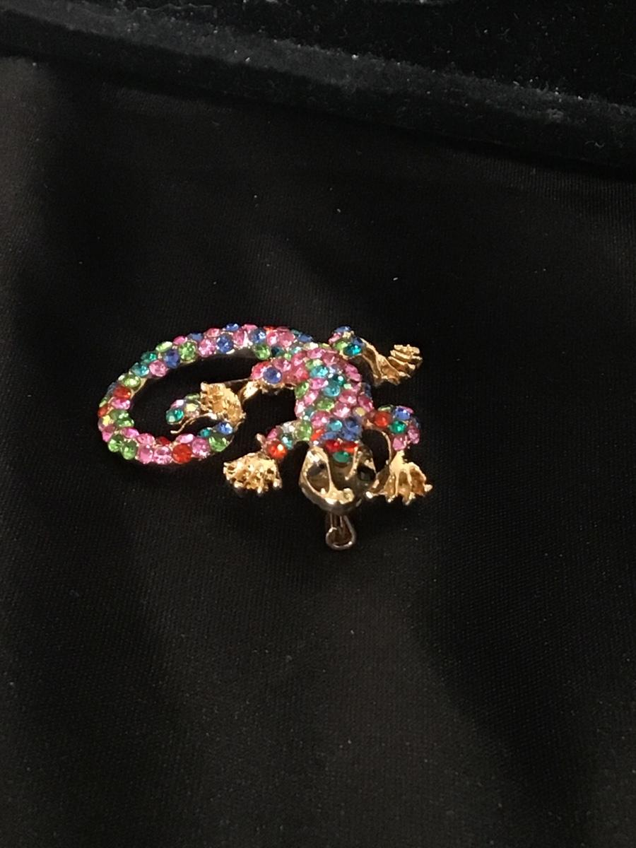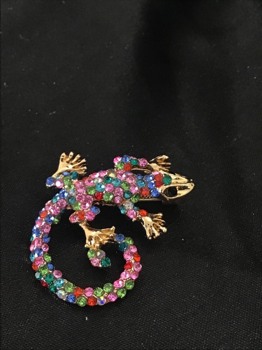 Colorful Iguana rhinestones pin