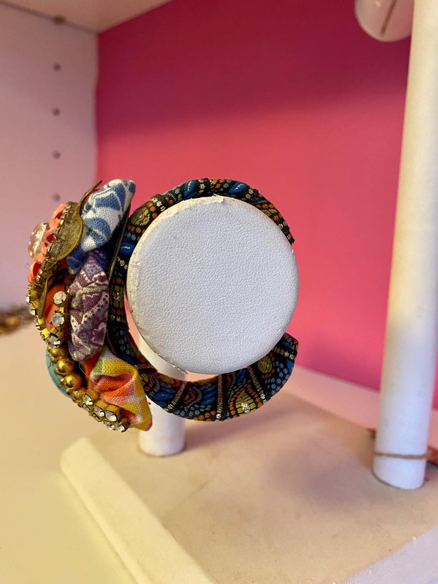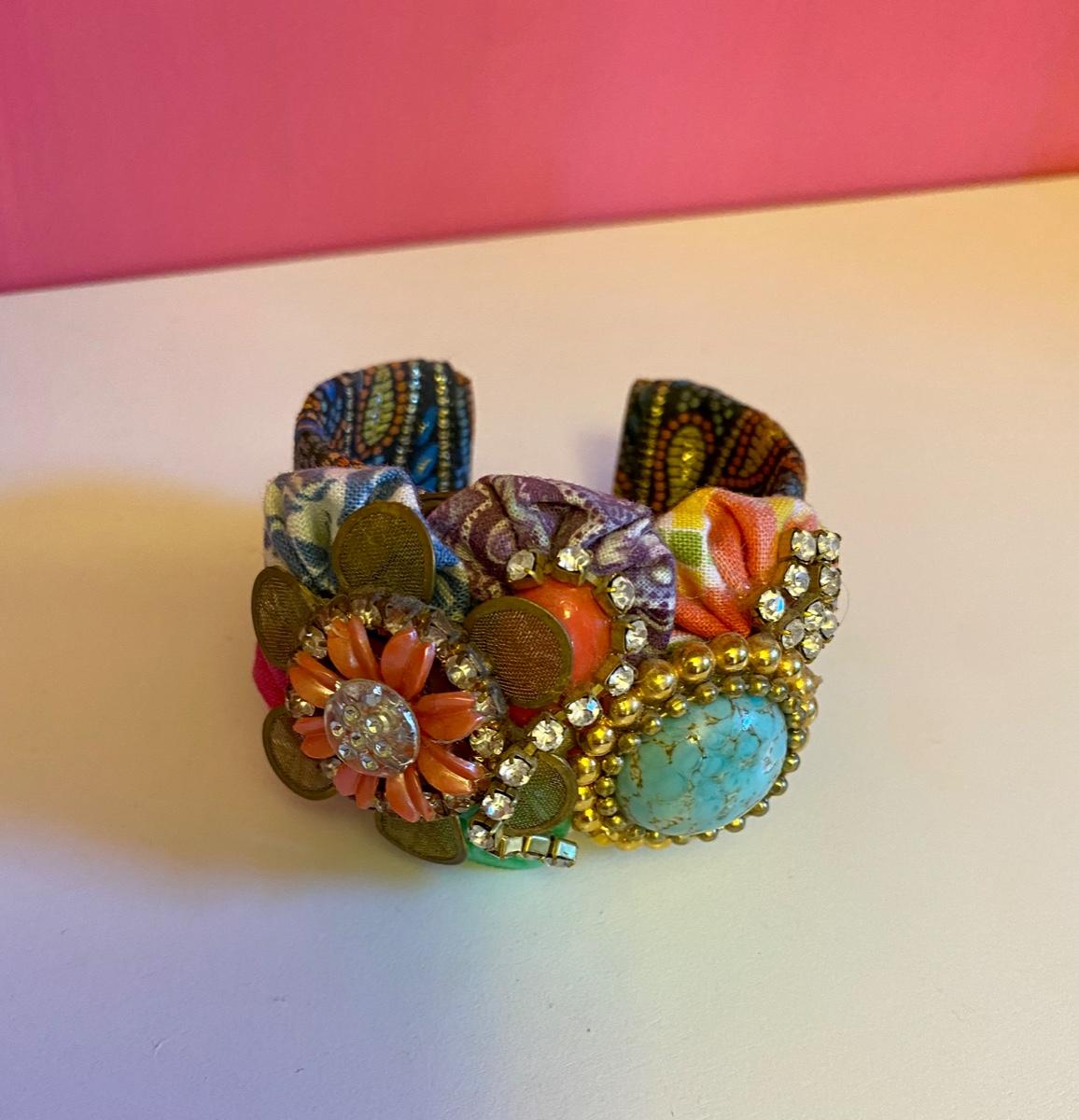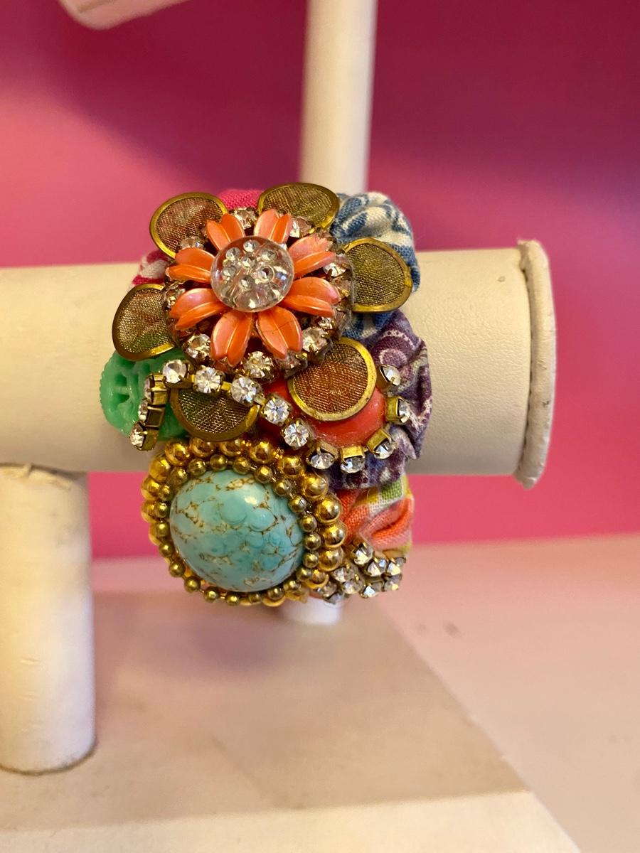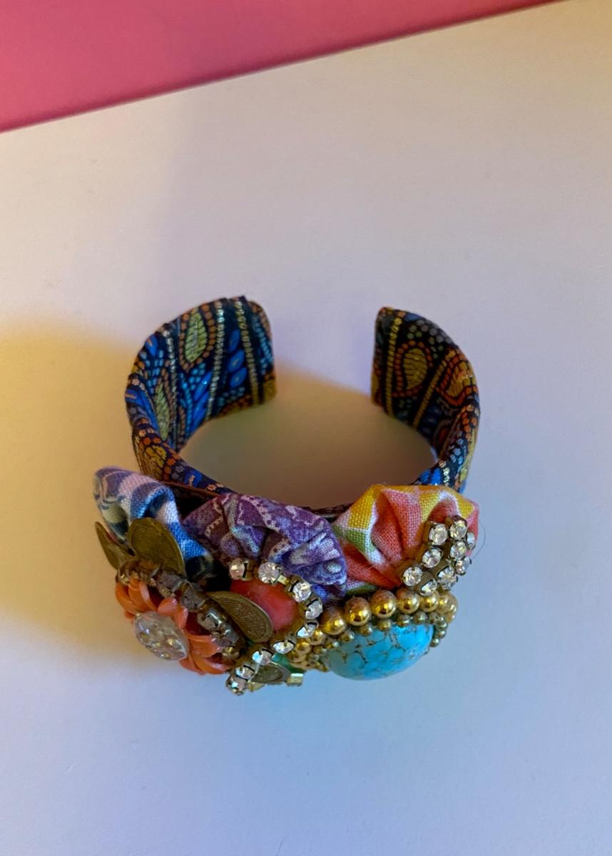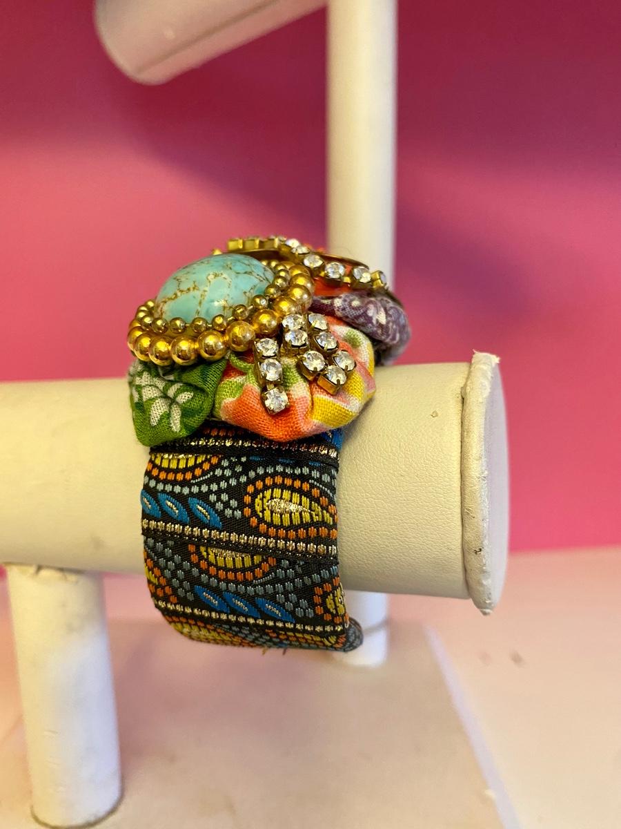 Colorful Jewel and Flower Fabric Cuff