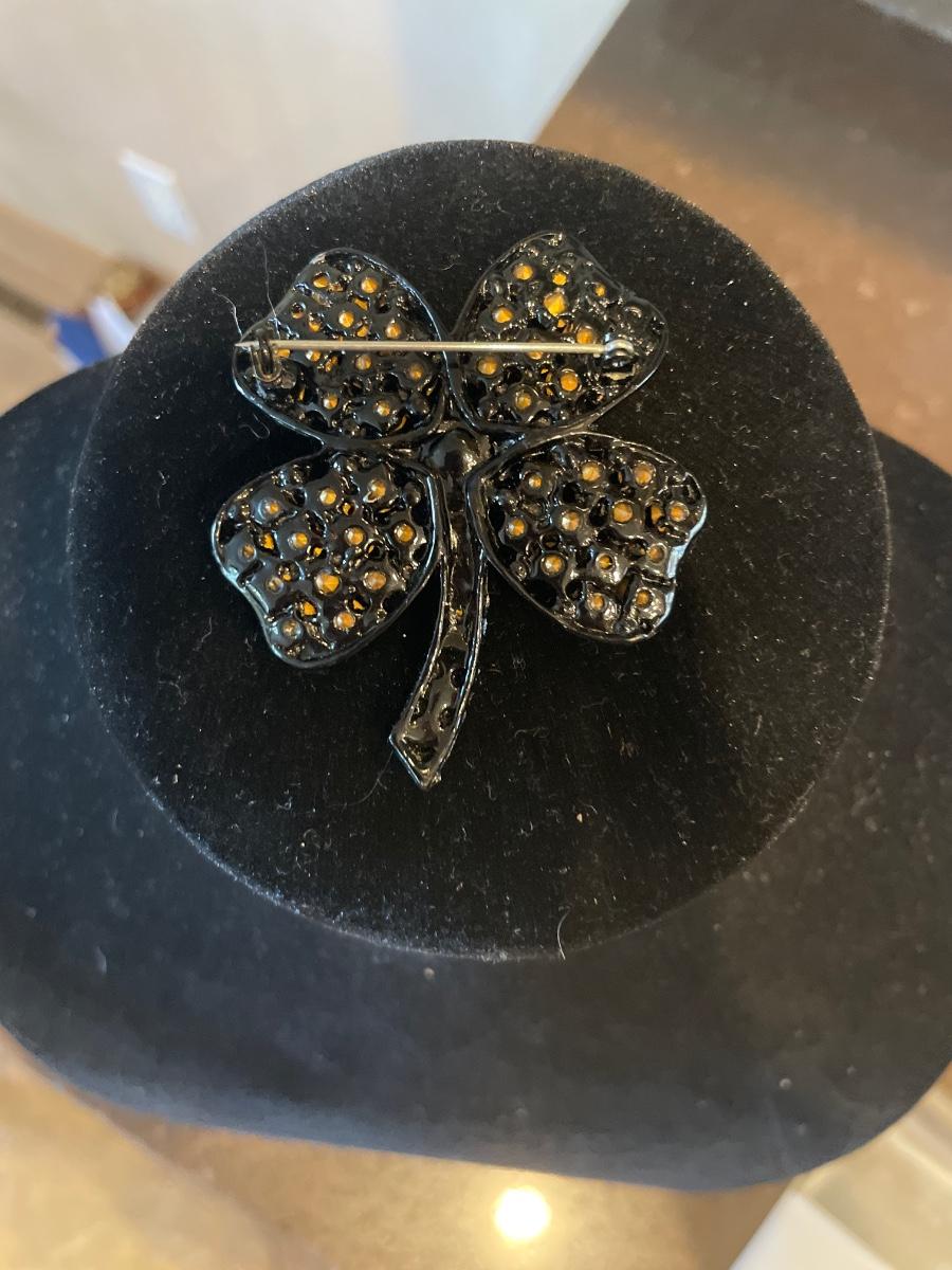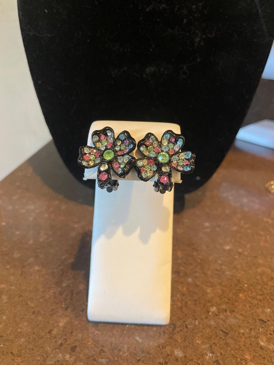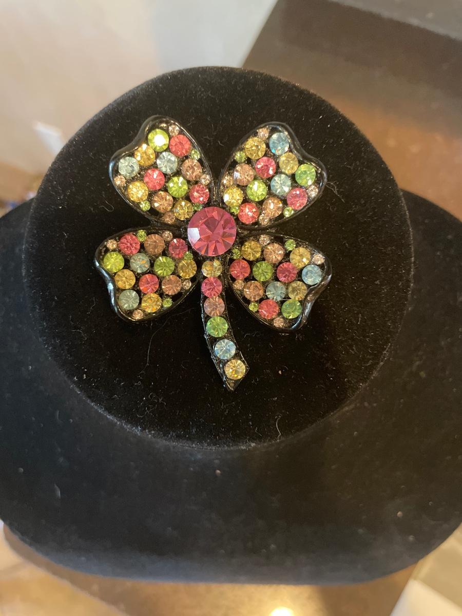 Colorful jeweled clover brooch and earrings