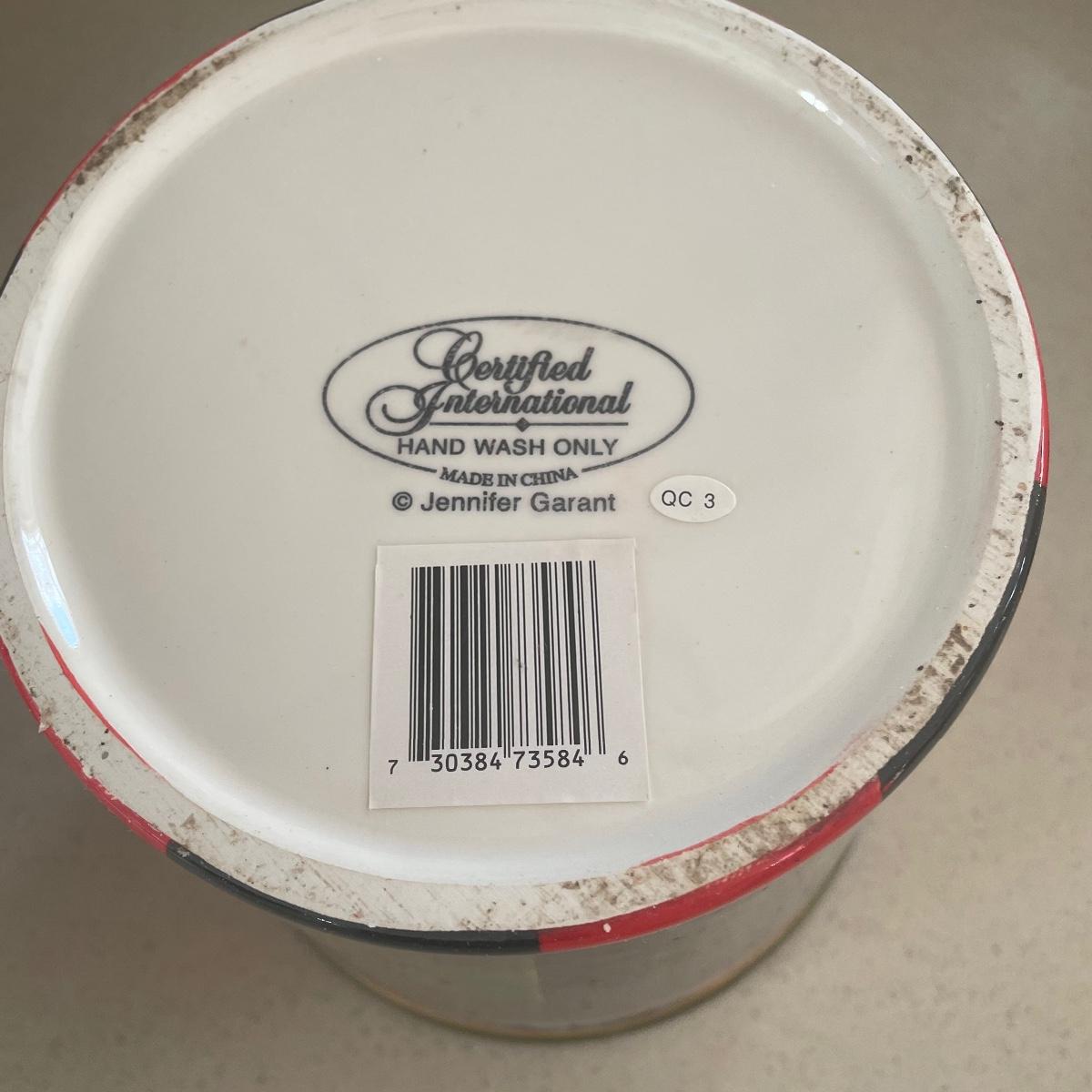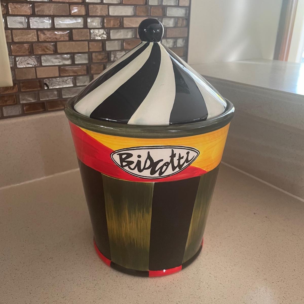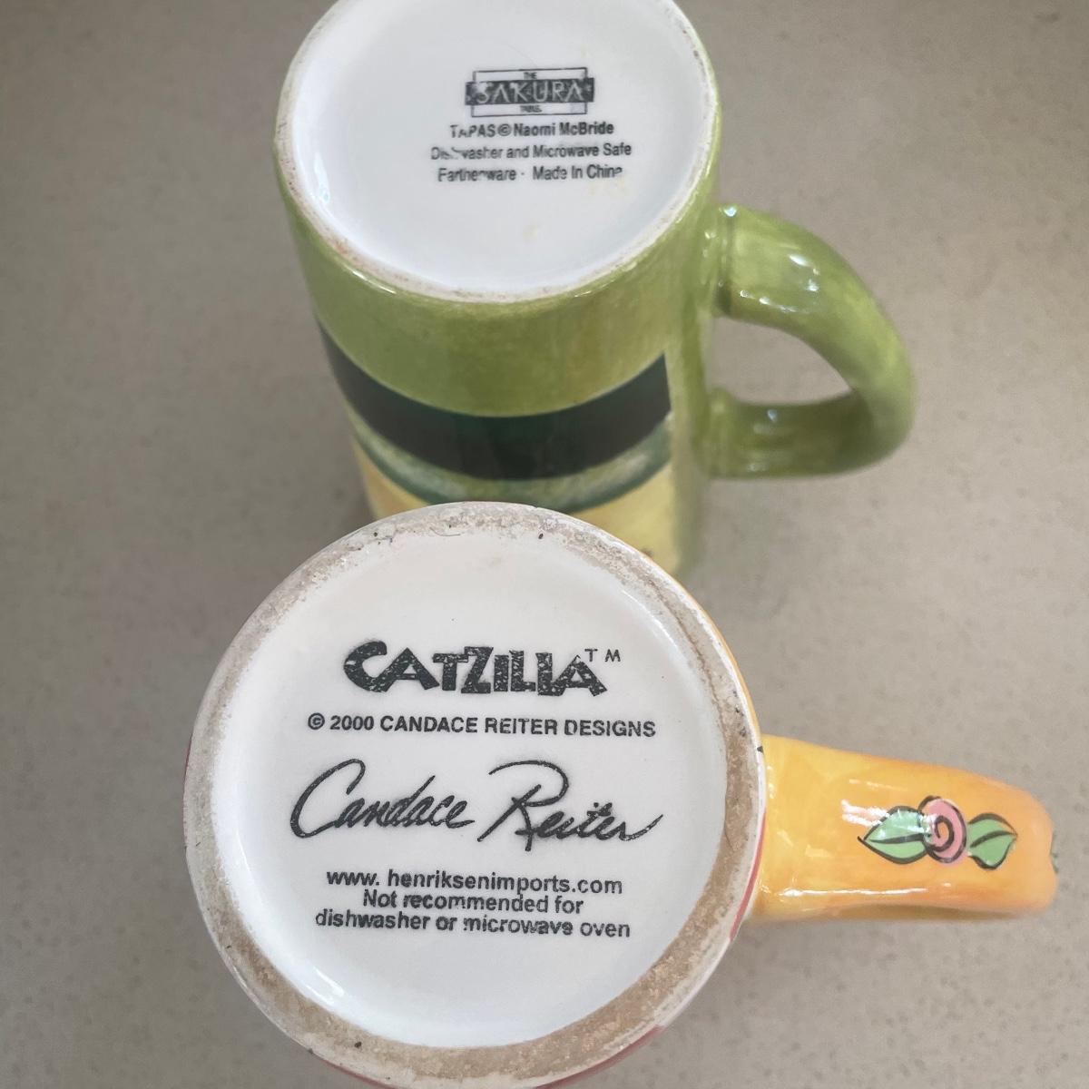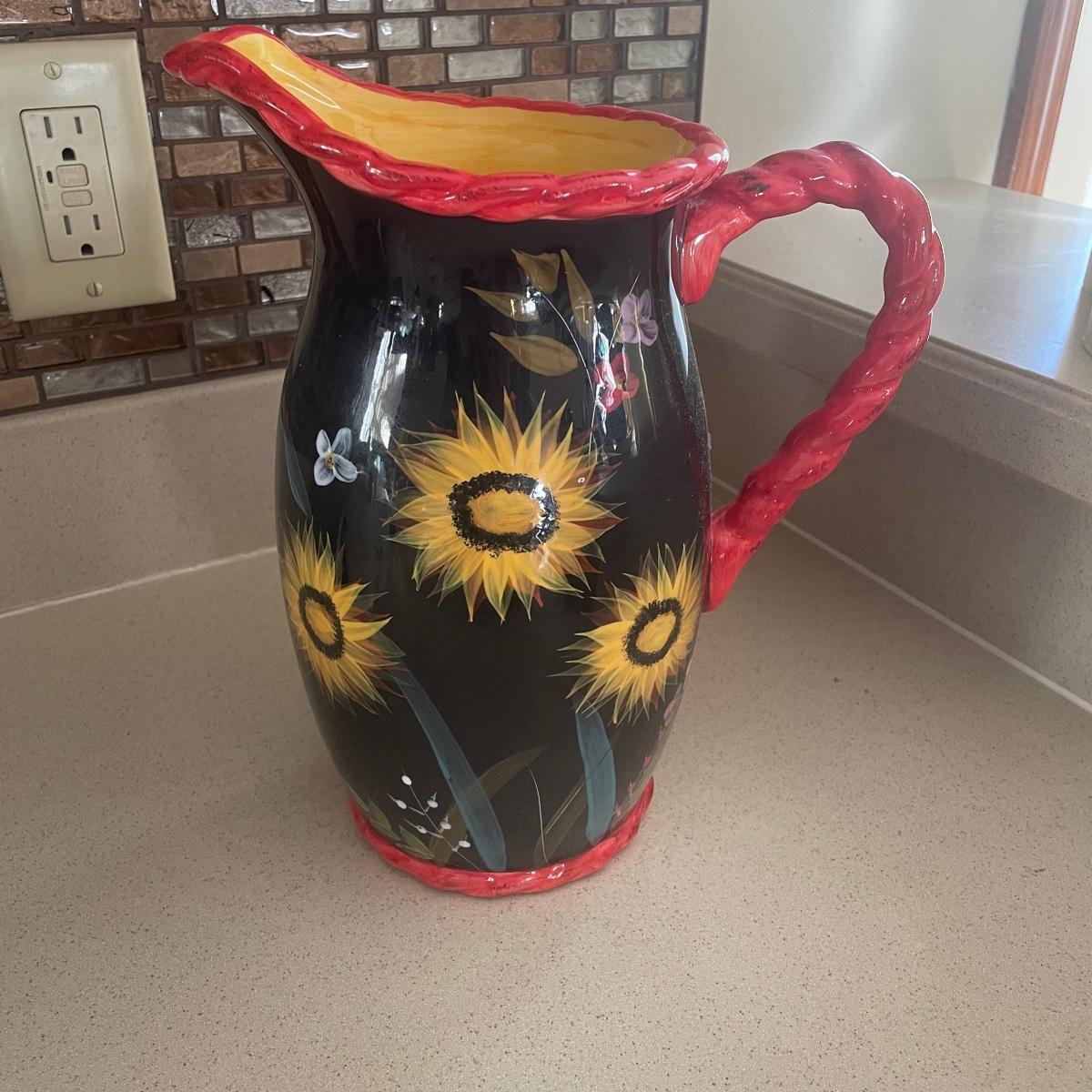 Brighten up your kitchen with this lot that includes two mugs, a large pitcher, lidded jar, a lidded terrine and an olive oil bottle (added to the lot later and not in the main pic).