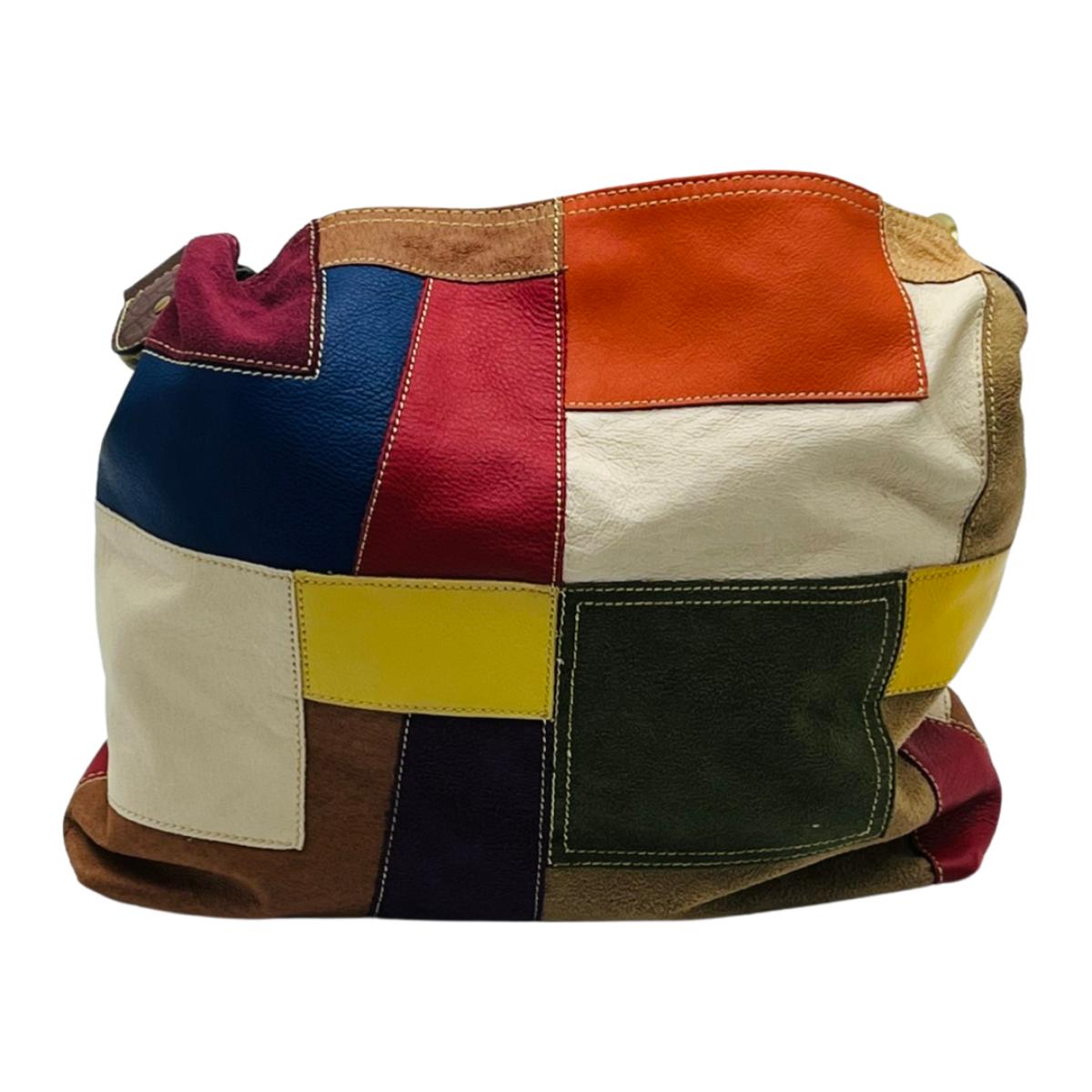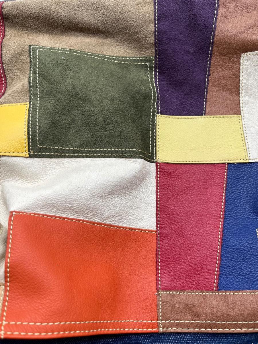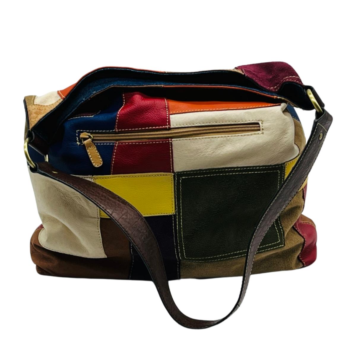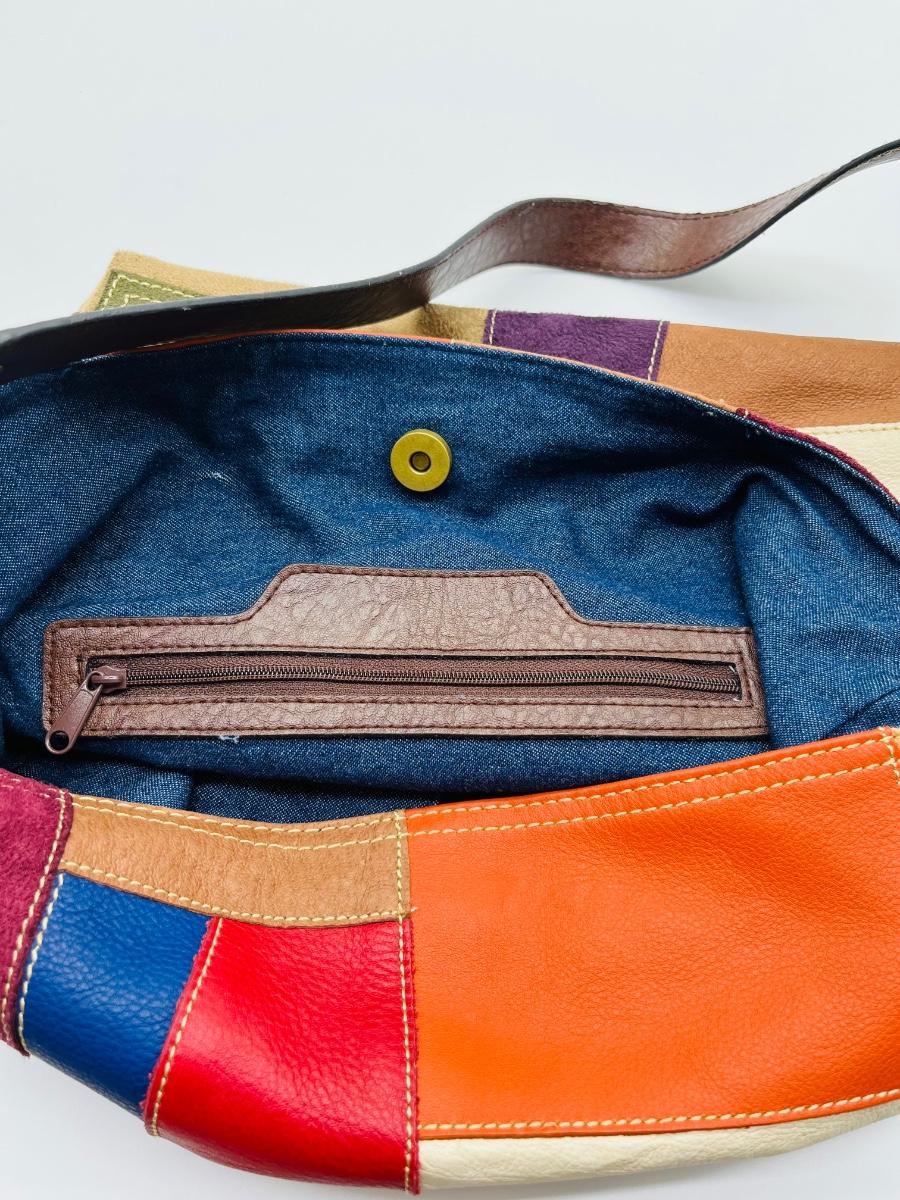 Colorful Leather & Suede Purse ~ With Leather Brown Strap & Denim Interior