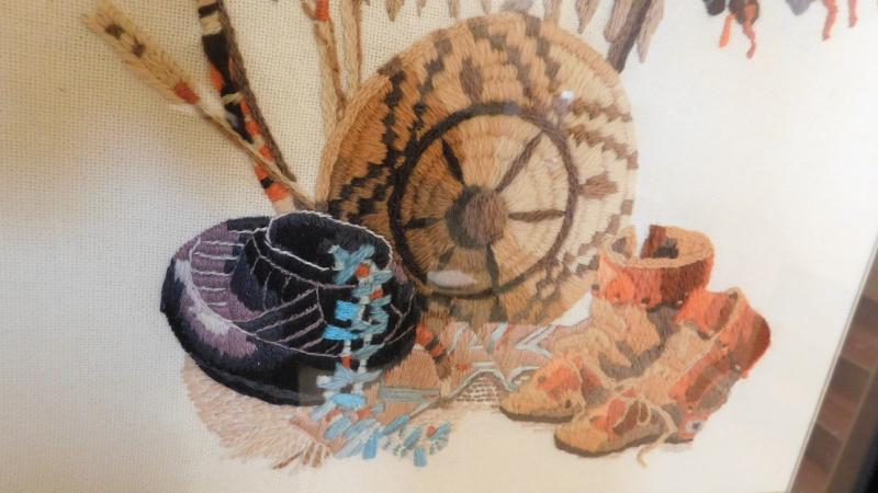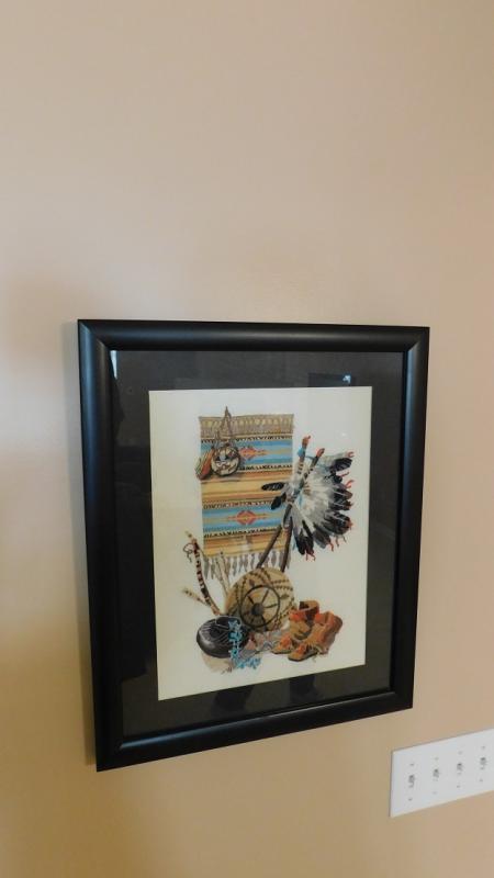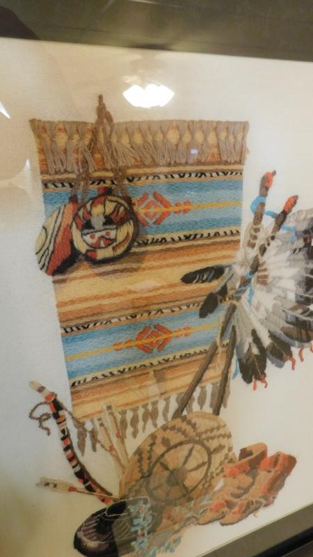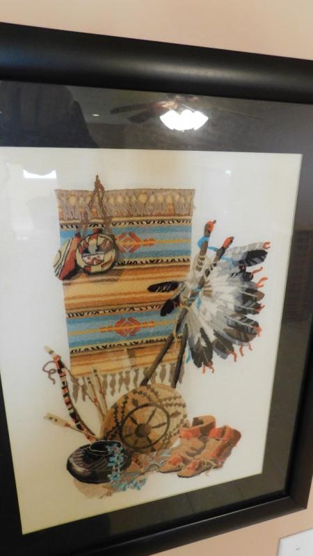 Colorful Native American Needle Point Art in Frame by Local Artist