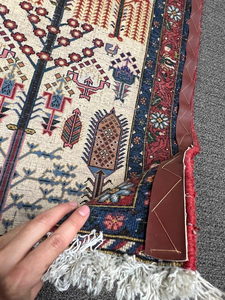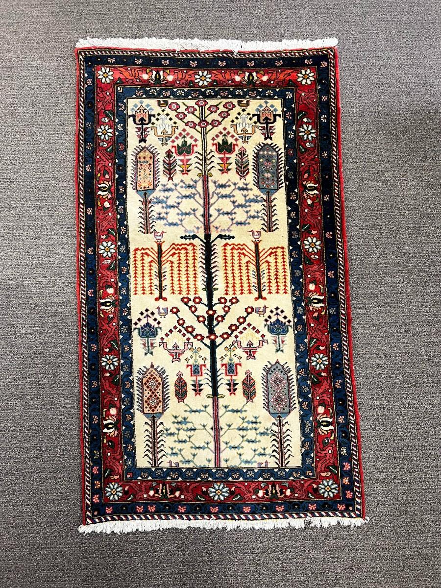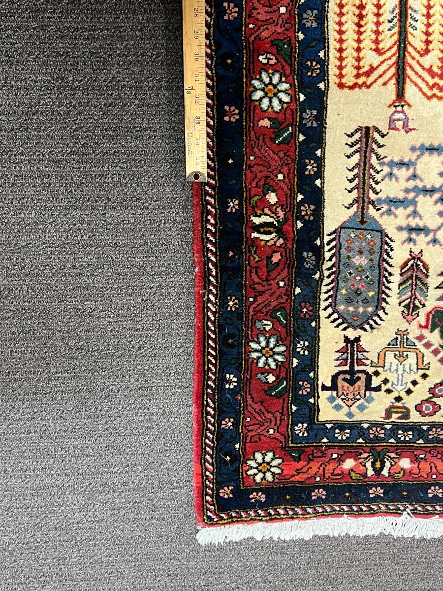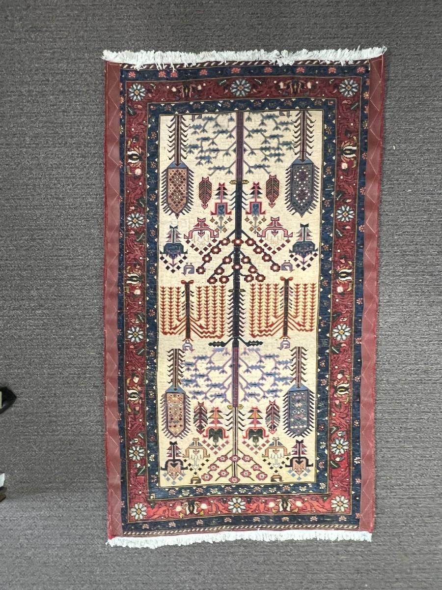 Colorful patterned area rug. Not very big only about 3'x5' size. No major spots or stains but needs to be cleaned.