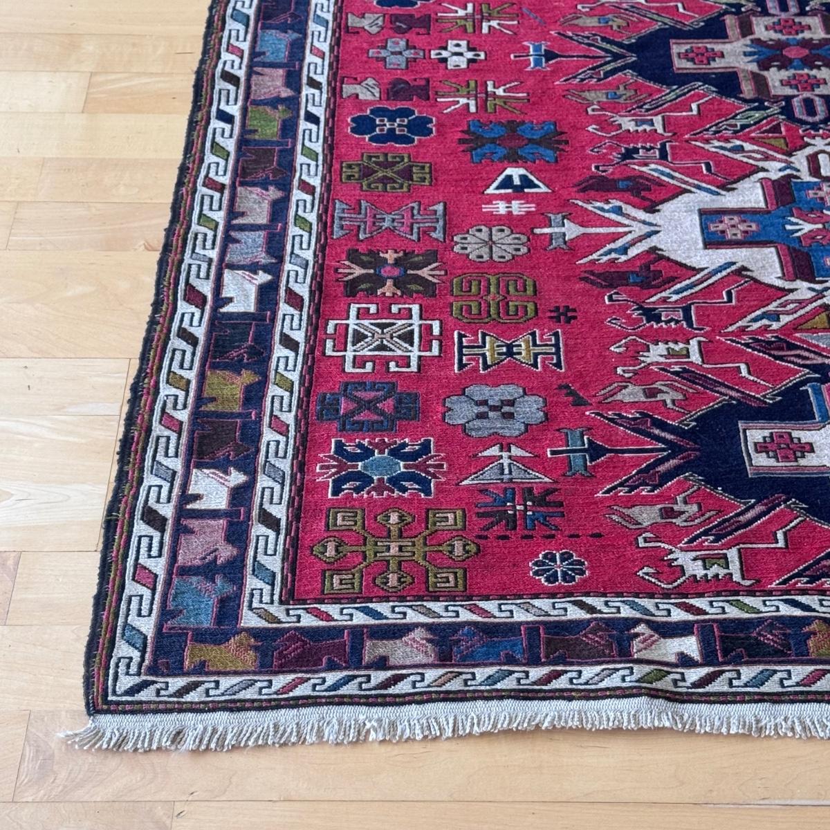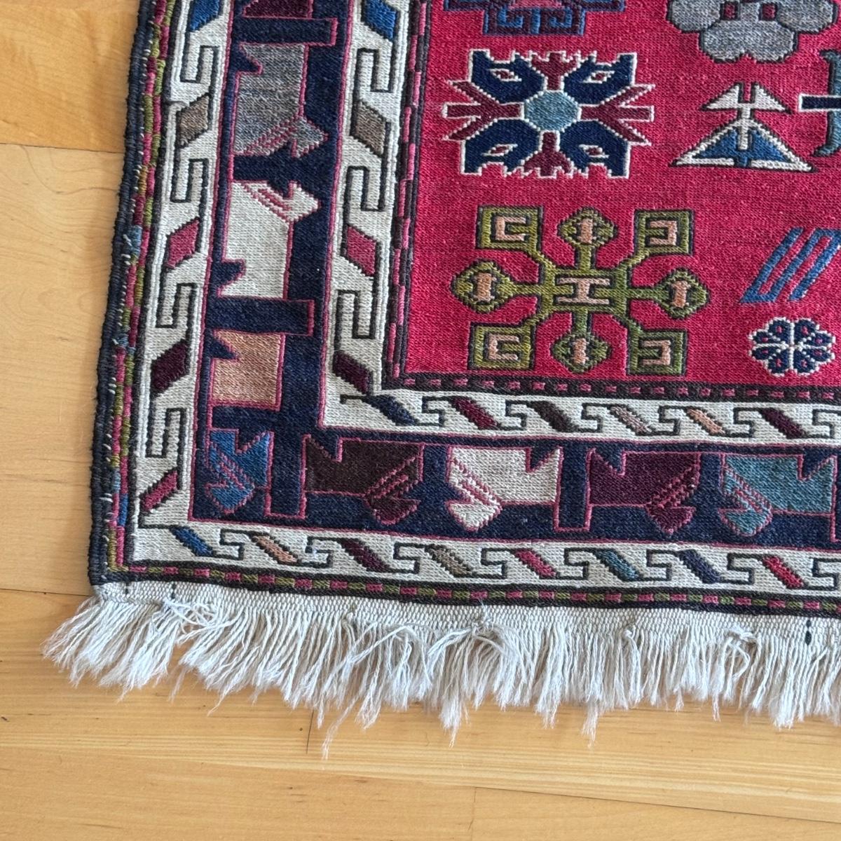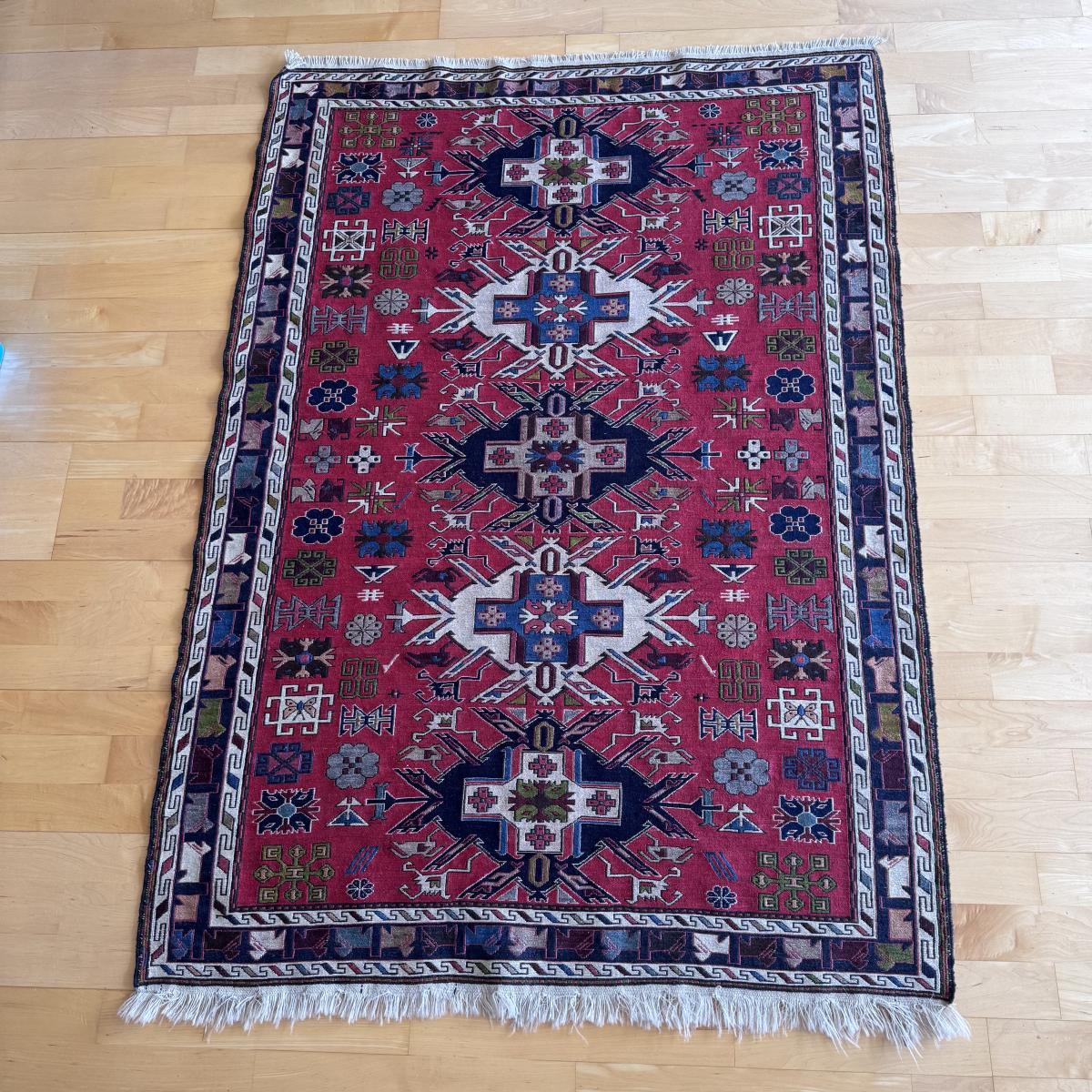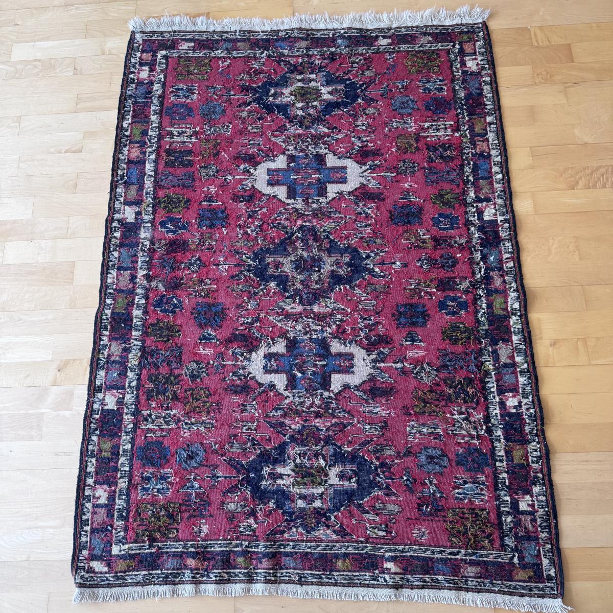 This lot includes one small, beautiful Persian style rug. The rug has a handful of beautiful colors, including red, blue, green, and pink. The rug measures 3’ x 5’H. Shipping available.