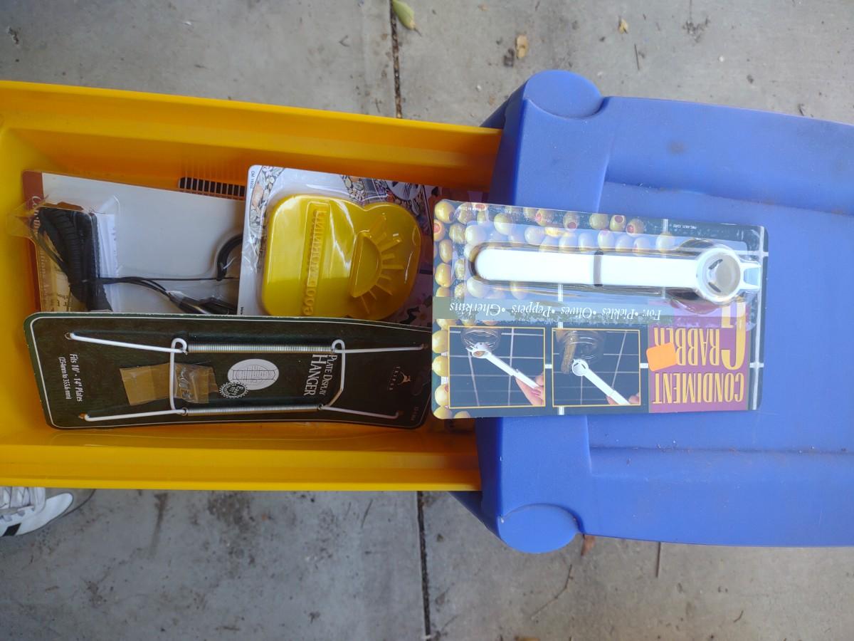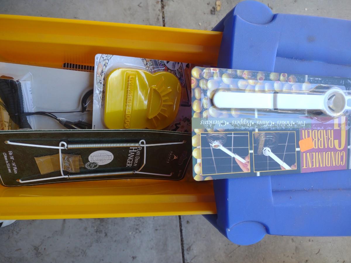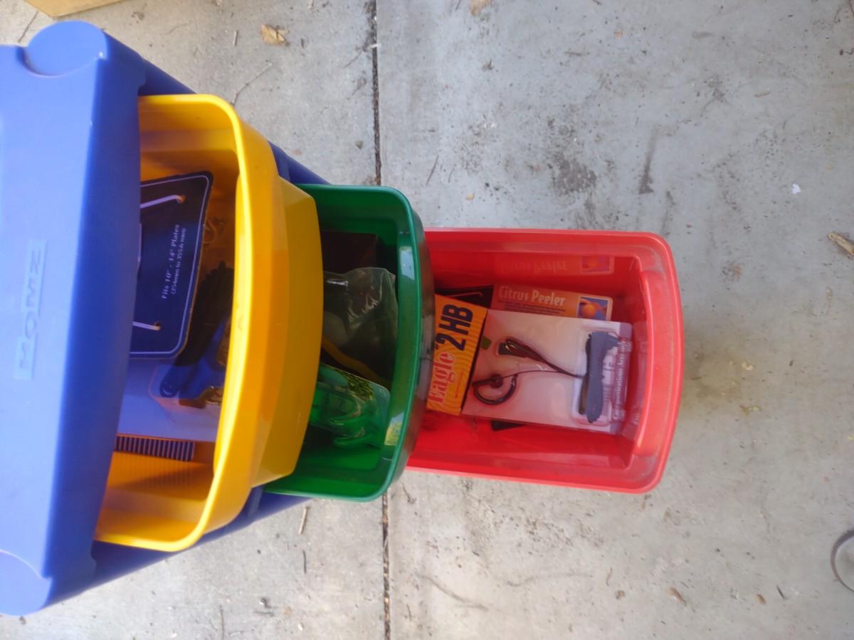 COLORFUL PLASTIC DRAWERS FILLED WITH HOUSEHOLD ITEMS