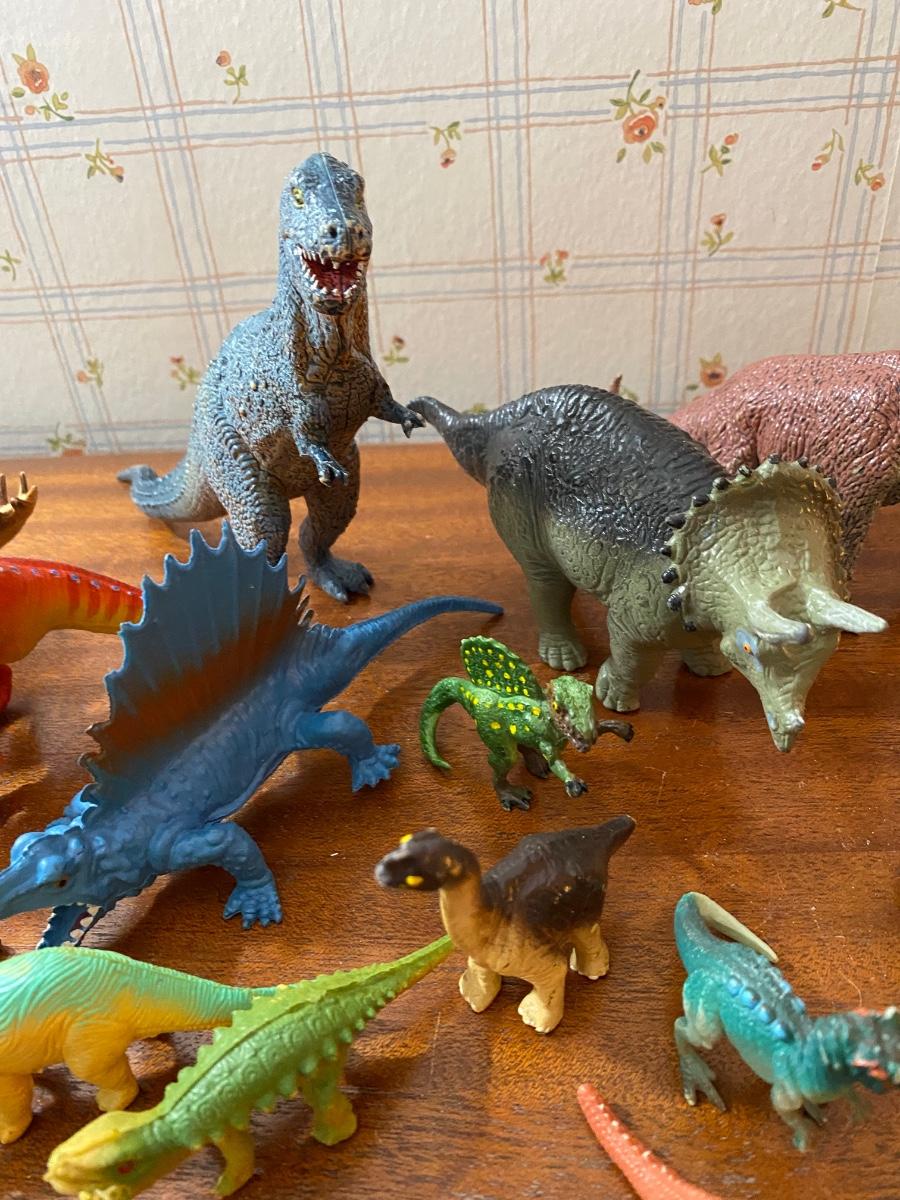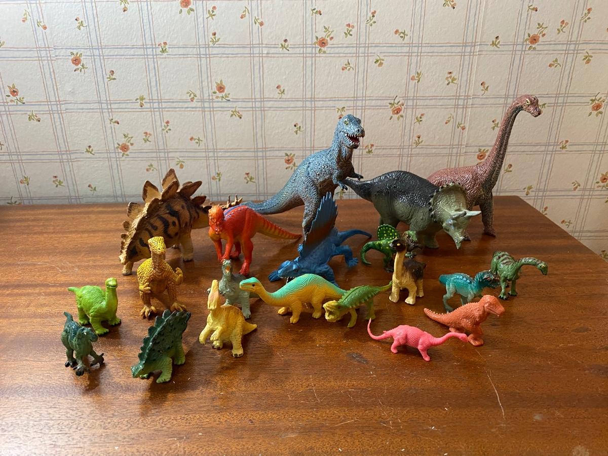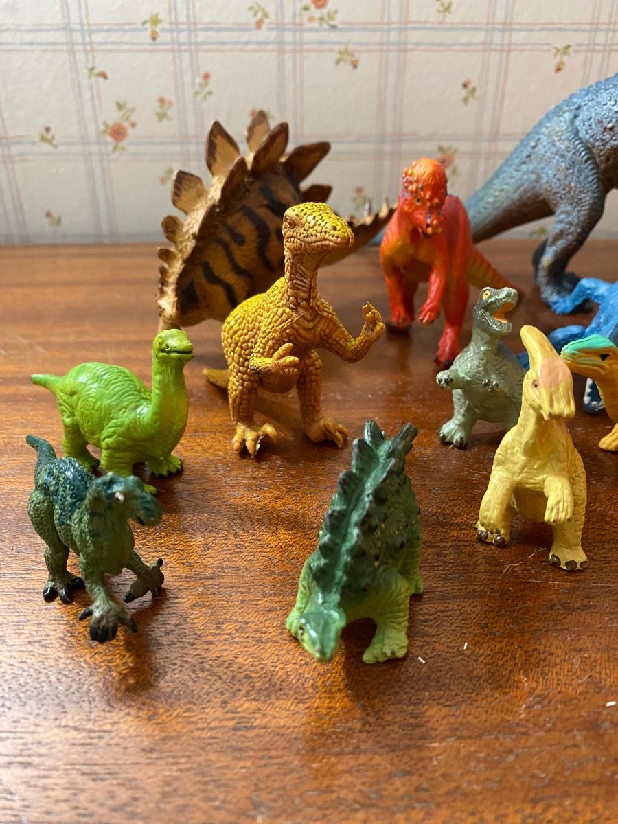 Colorful Plastic Vinyl Dinosaur Action Figure Imagination Play Toy Lot. Various dinosaurs of various sizes.