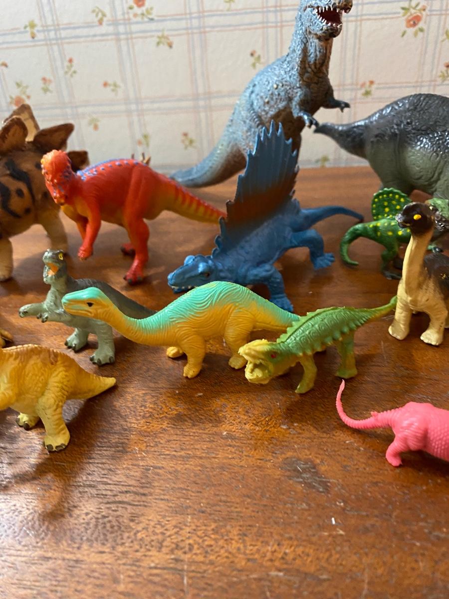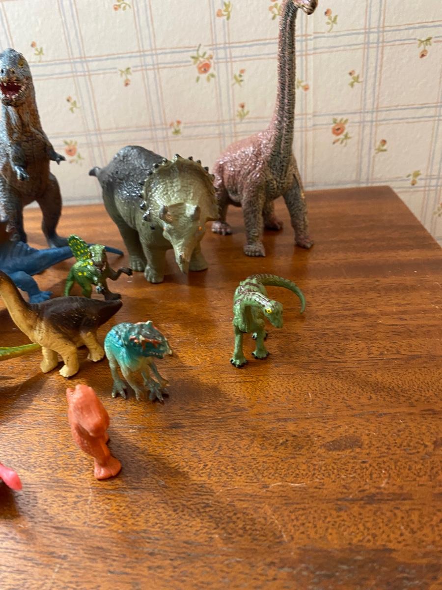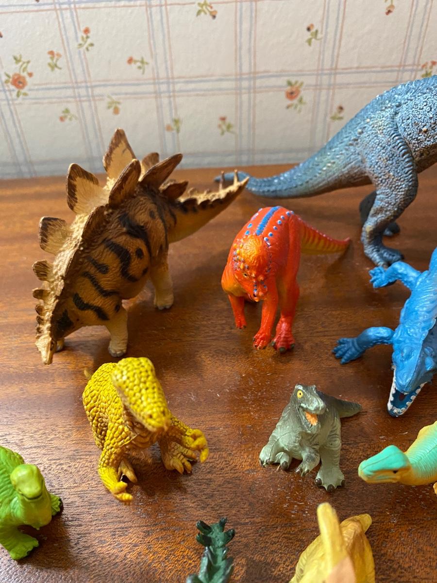 Colorful Plastic Vinyl Dinosaur Action Figure Imagination Play Toy Lot. Various dinosaurs of various sizes.