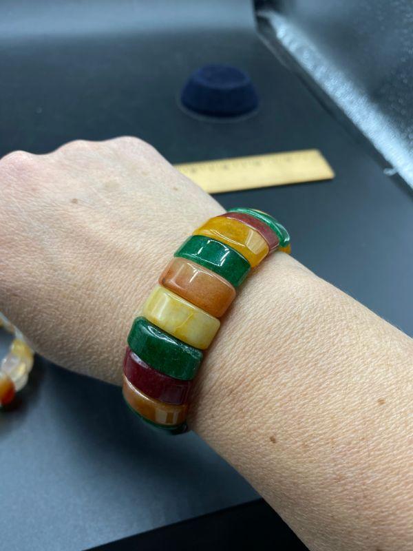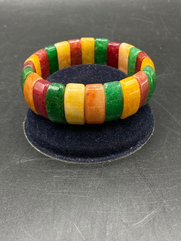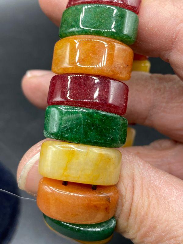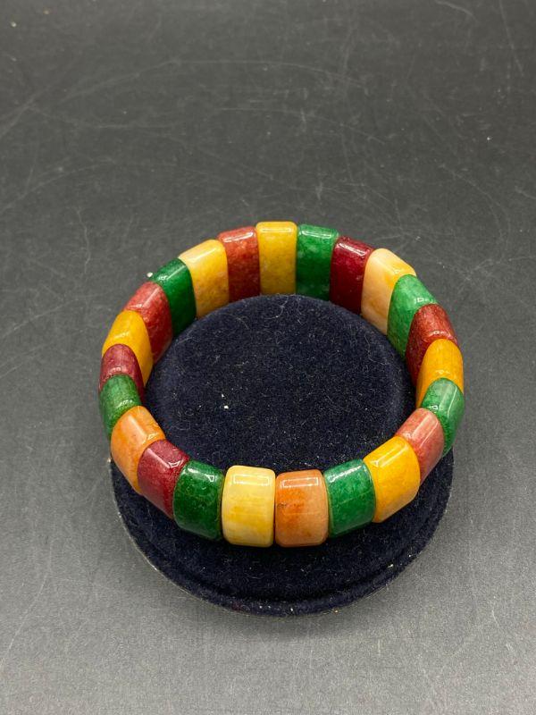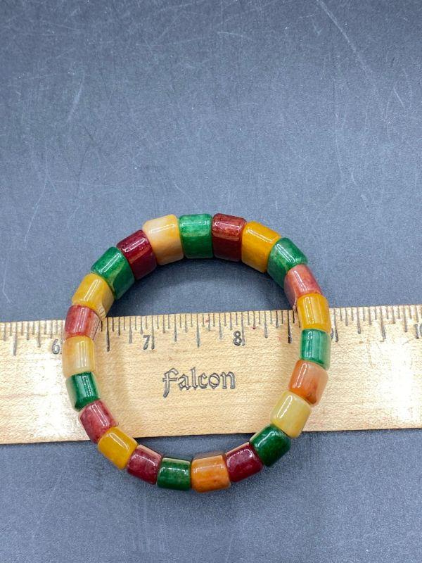 Colorful polished stone stretch bracelet. Possibly dyed natural stones, vibrant color. Stretch to wear. 3" unstretched.