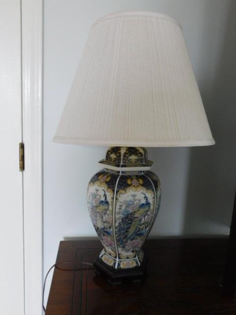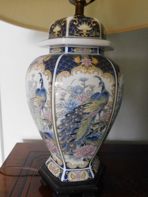 Colorful Porcelain Ginger Jar Chinoiserie Peacock Lamp 25"