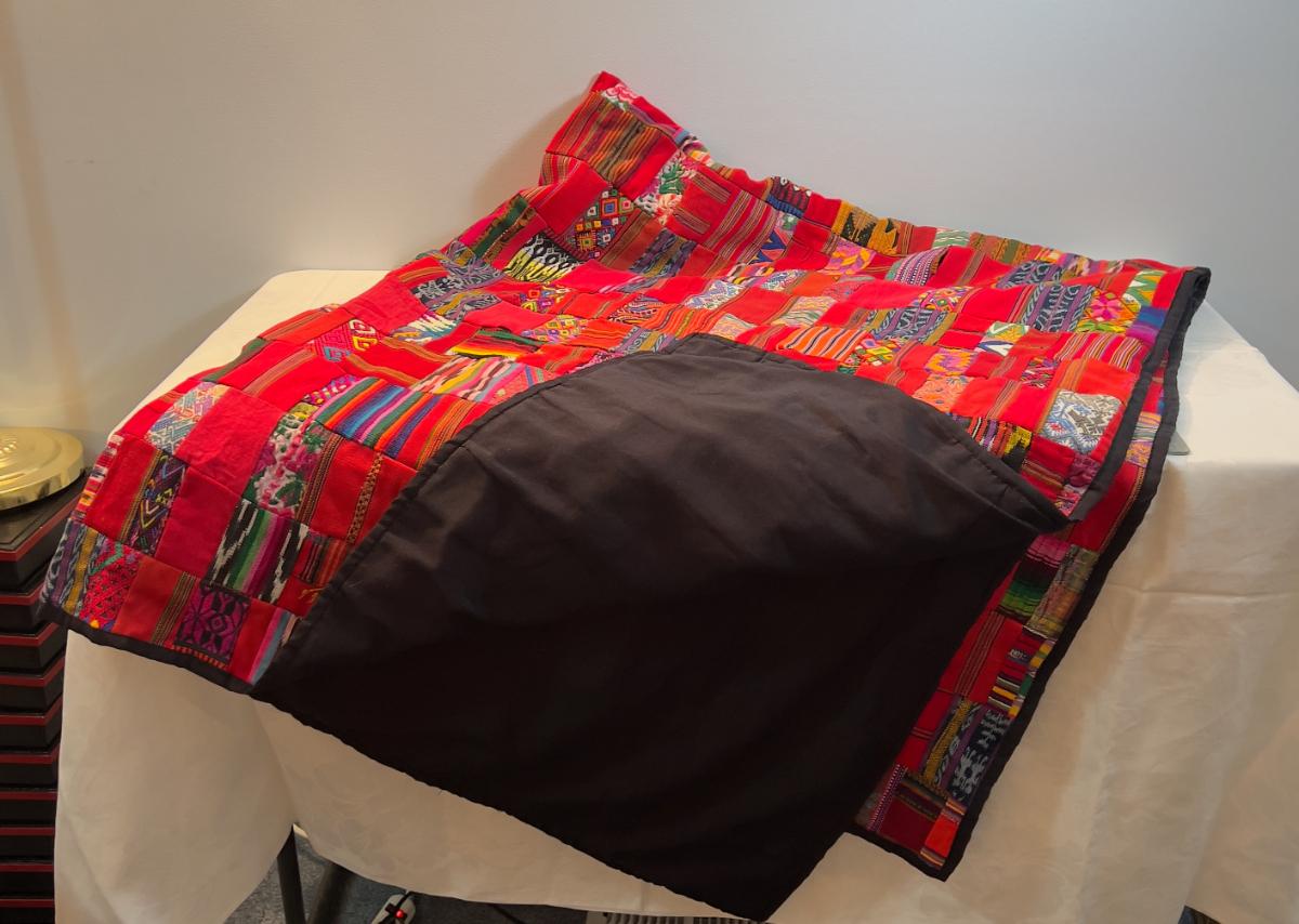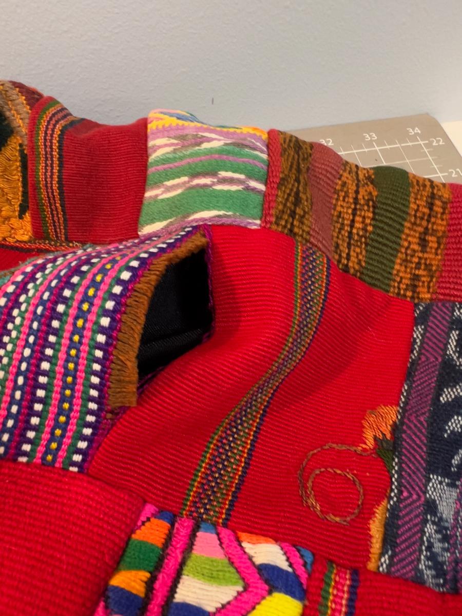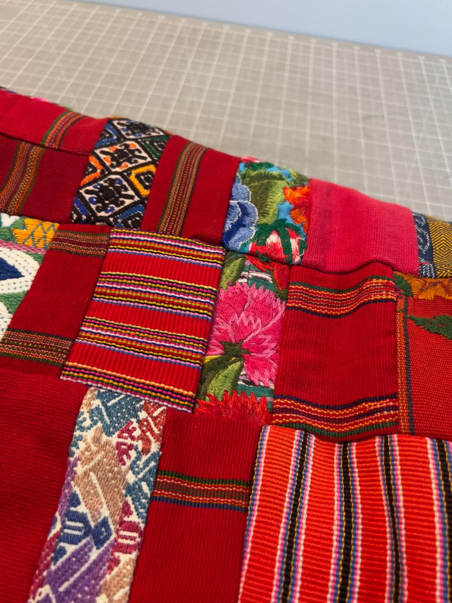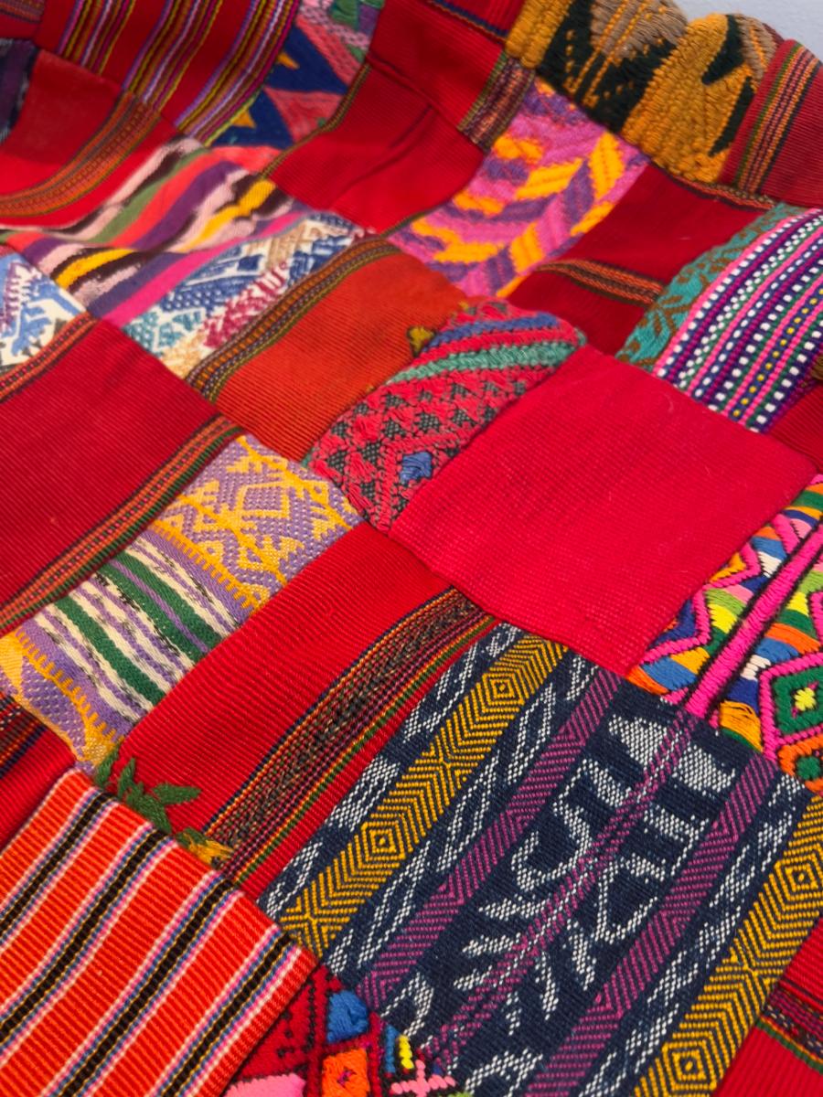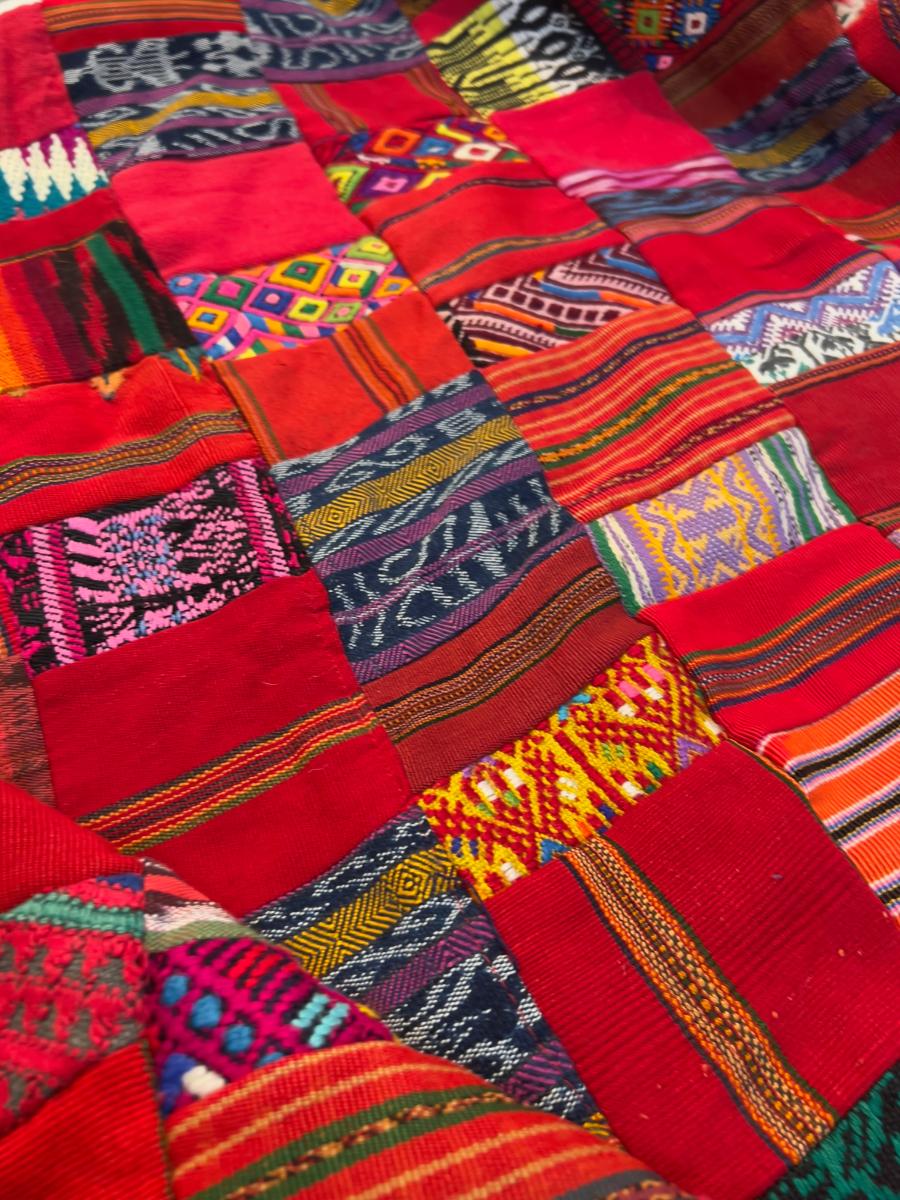 Colorful Red Quilt 1960's era, lots of polyester fabrics