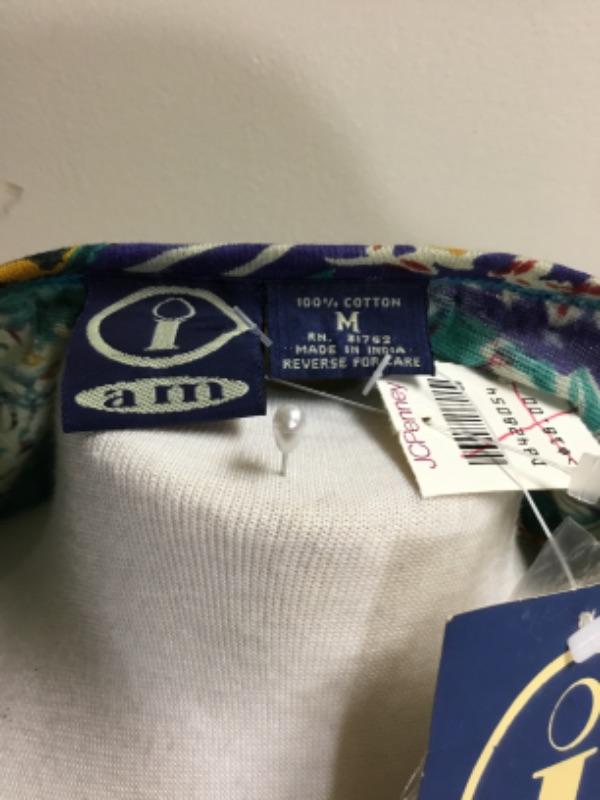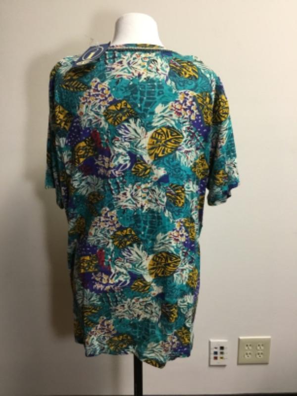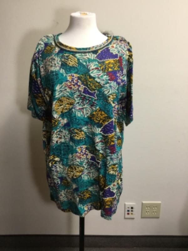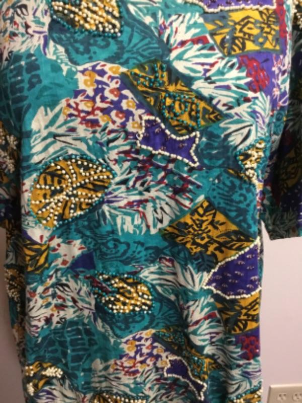 NWT vintage blouse tropical print top loose body, short sleeved, boat neck, accent beading, size M