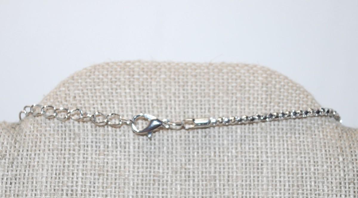 Colorful Tribal Style PENDANT (2½" x 1¼") with a Jade-Like Oval Stone on a Silver Tone Necklace Chain 24" L