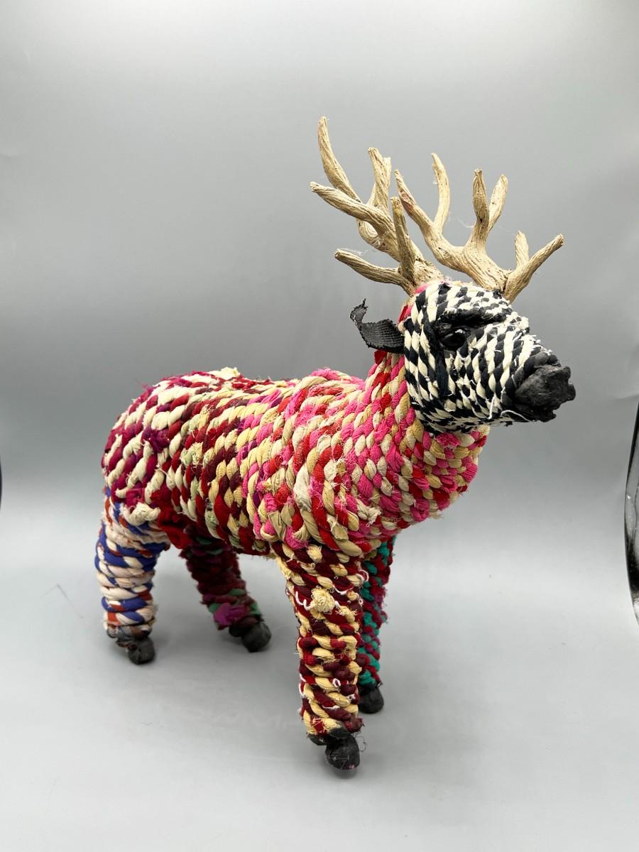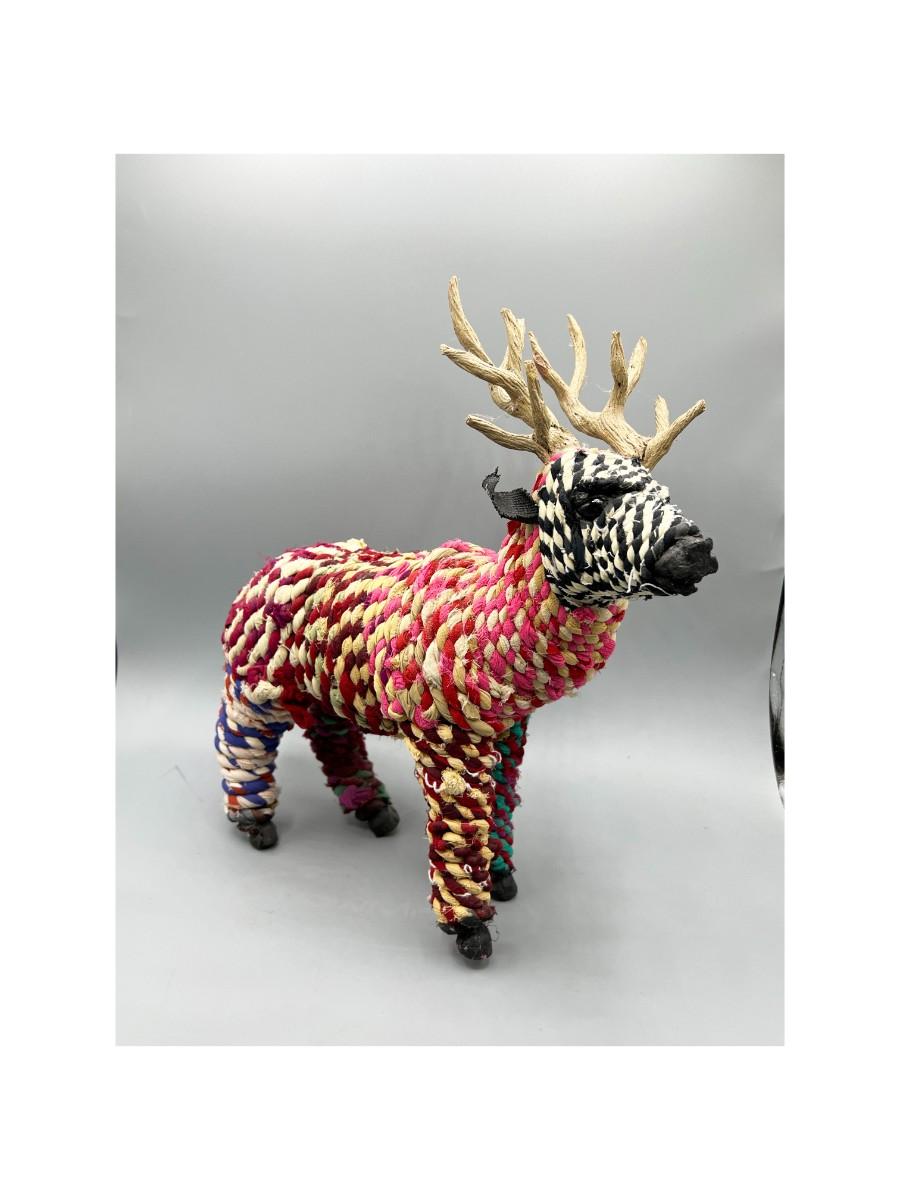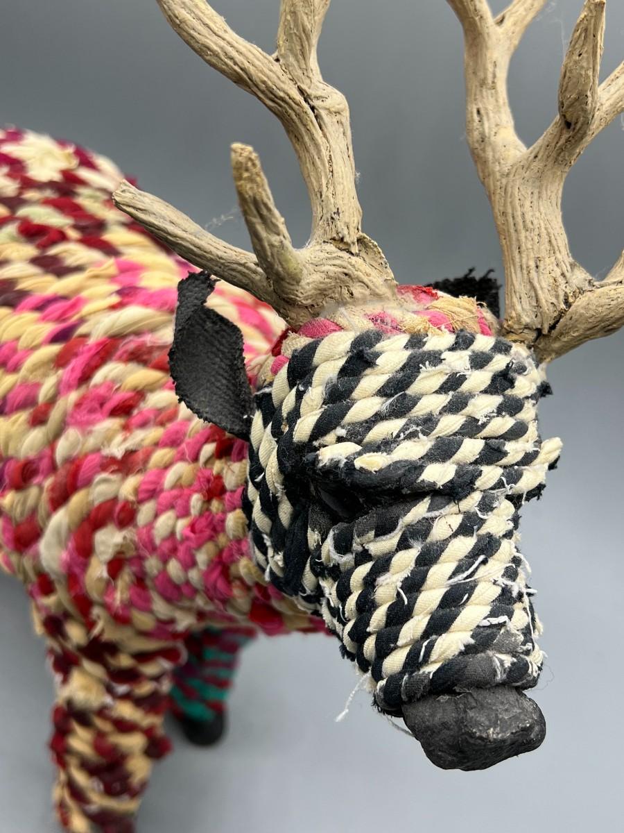 Colorful Twisted Rope Twine Deer Buck Figurine Statue