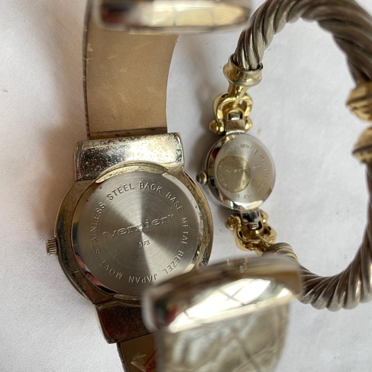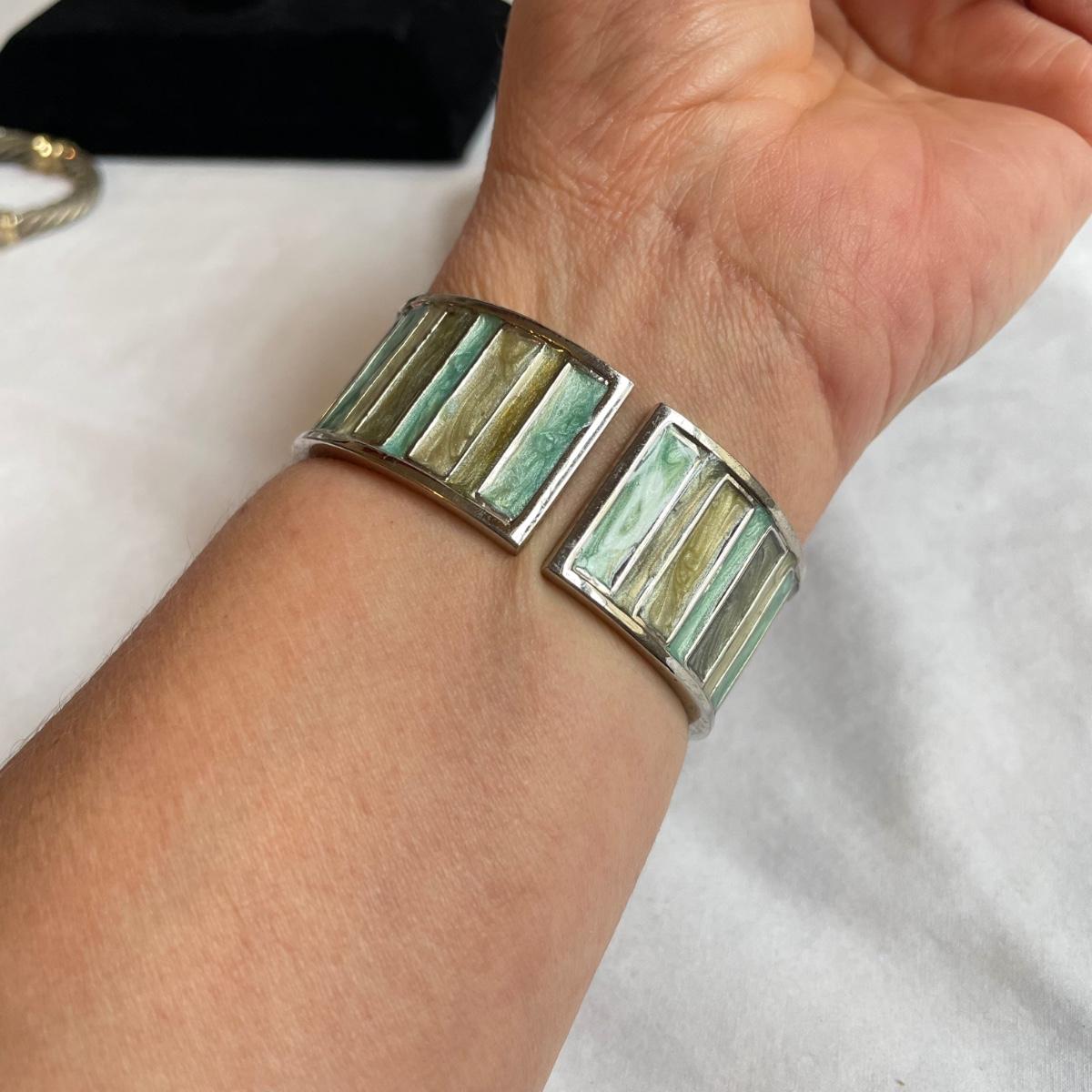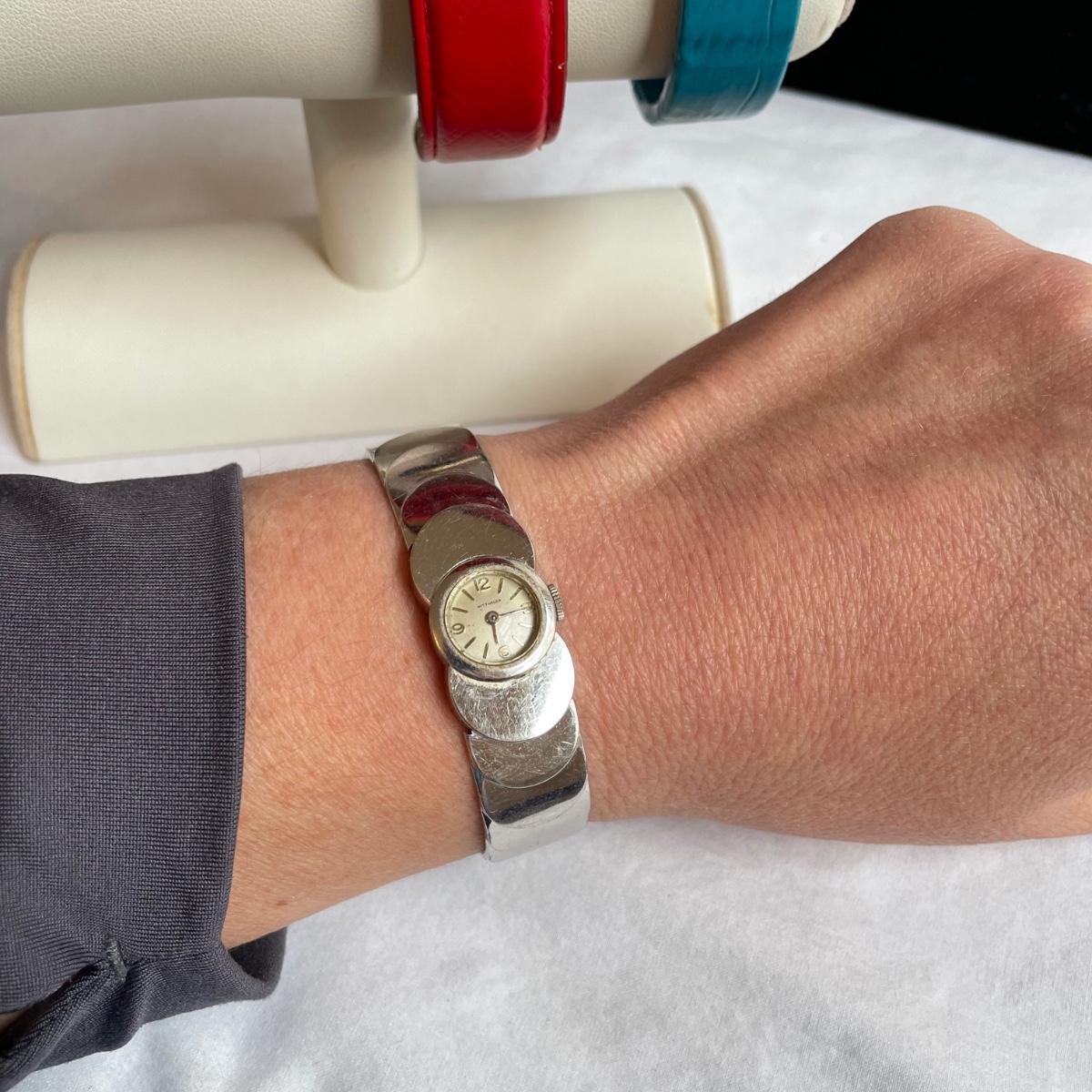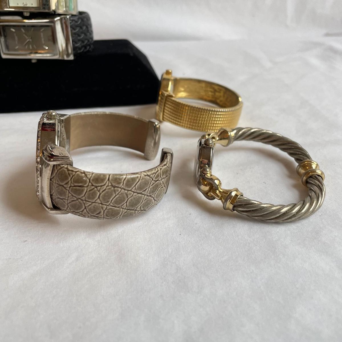 A very fun selection of cuffed watches in a variety of colors and styles. Brands include Geneva, Vernier, Kessaris, SoHo, Waltham, Mira and more. Some bands are made from a thick leather-like material and others are metal. There are examples of wear shown in photos, some need a quick glue to their band wrapping, others are missing a back plate. Watches were not tested. All sales are final. No returns or refunds. Please bid accordingly. Shipping Available.