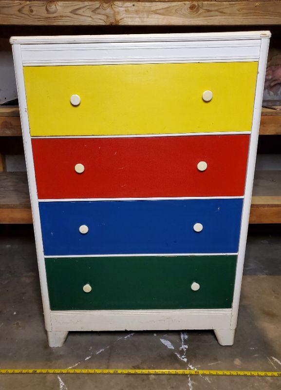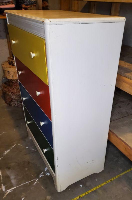 COLORFULLY PAINTED WOOD 4 DRAWER DRESSER