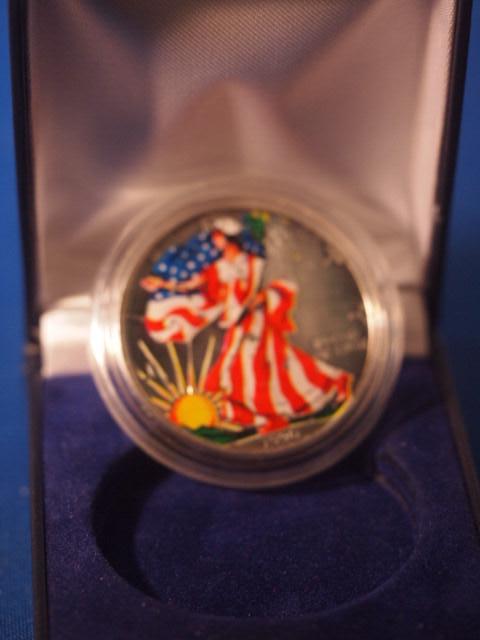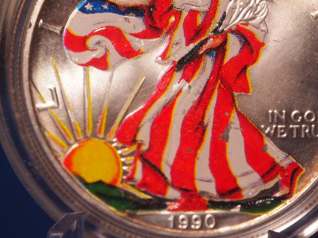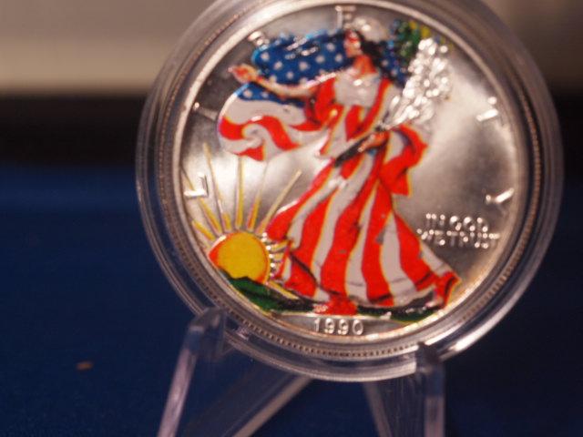 1990 Colorized Silver American Eagle Great Display piece in Coin Holder comes with original Box