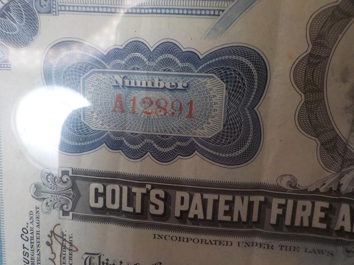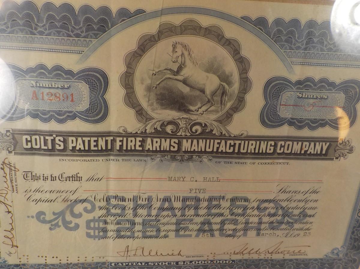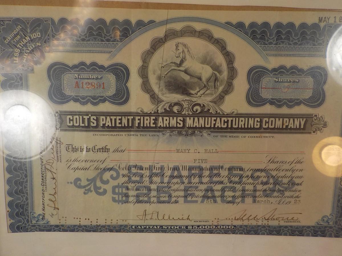 Real share certificate from the colt gun mfg. Rare collector piece.