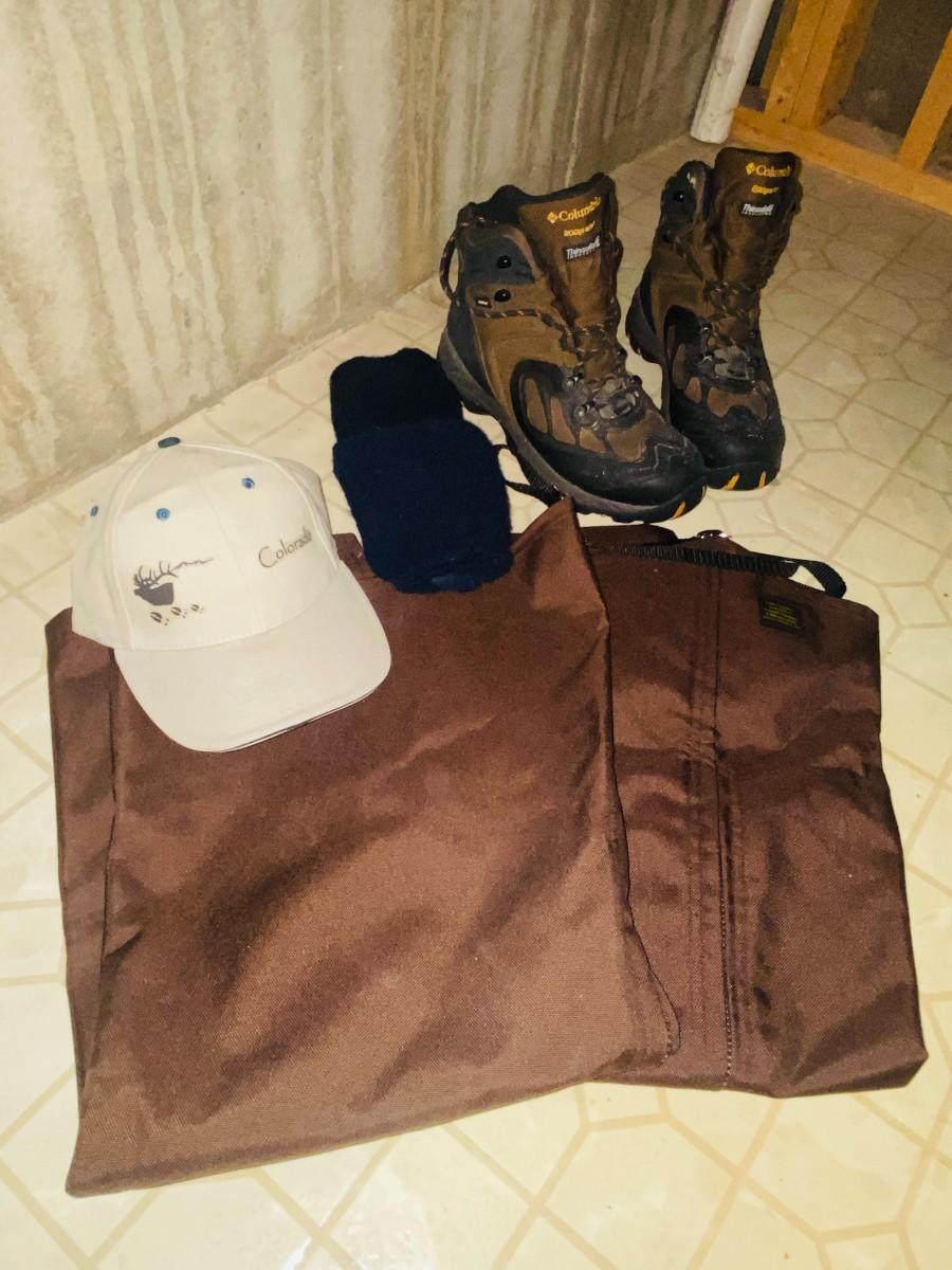 COLUMBIA HIKING/SNOW BOOTS, LCS WARM WEATHER BRIAR CHAPS & WOOL KNEE HI SOCKS