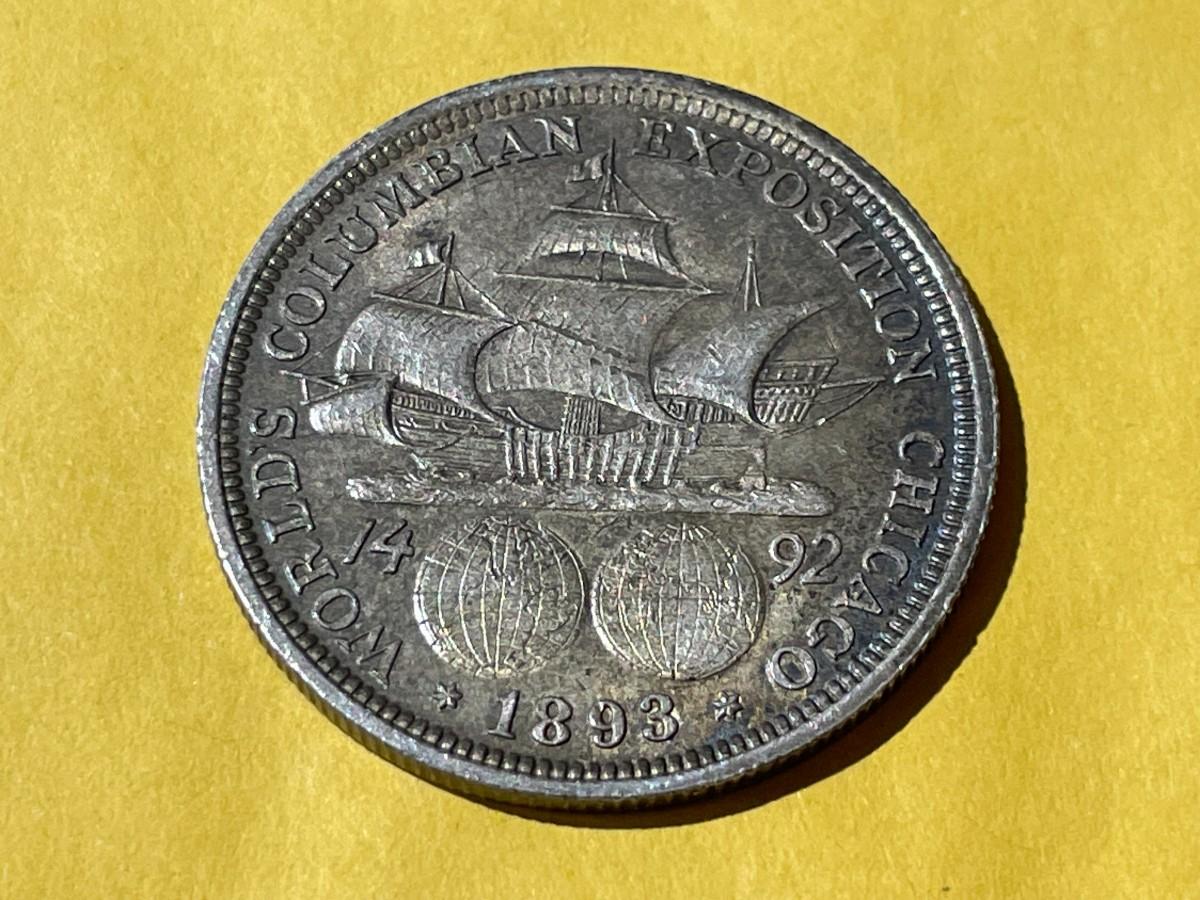 Columbian Exposition 1893 AU Condition Toned Commemorative Silver Half Dollar as Pictured. $5 Domestic Shipping.
