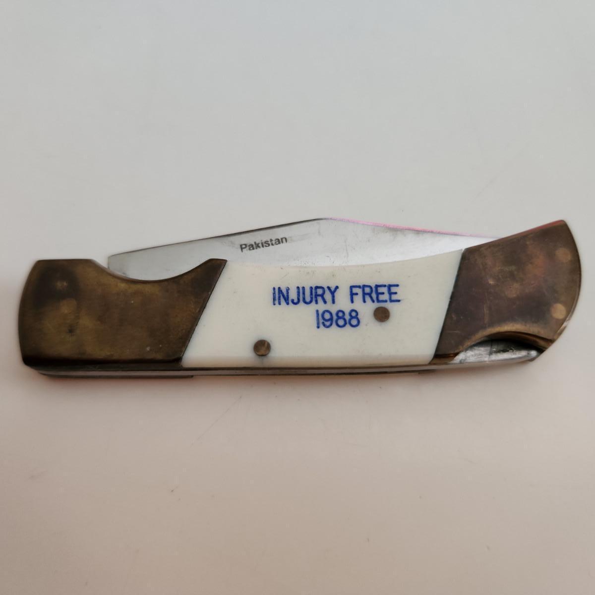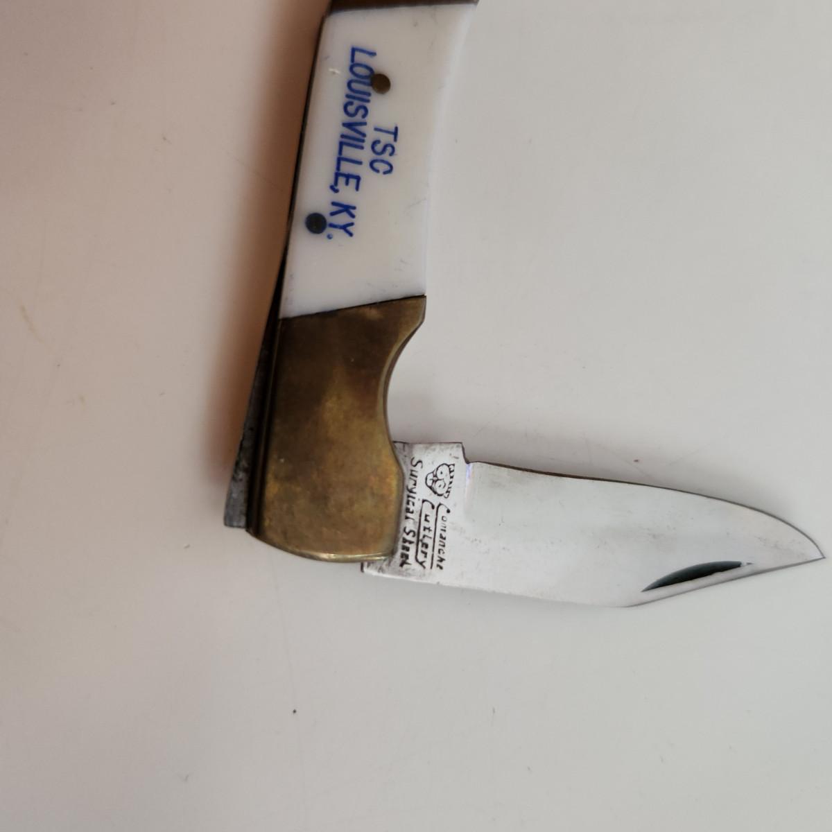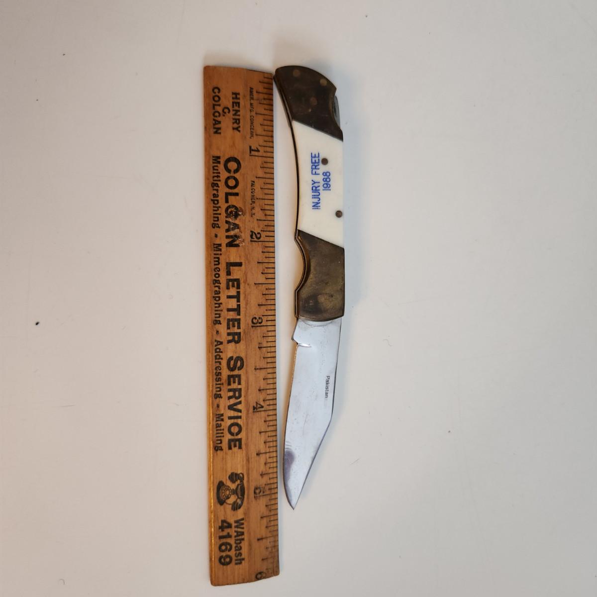 This auction lot is for a Comanche Cutlery Pocket Knife. This knife is dated 1988 and was most likely a prize given at the rail yard for Safety. The blade is marked surgical steel. Nice 1-blade pocket knife for everyday use.
