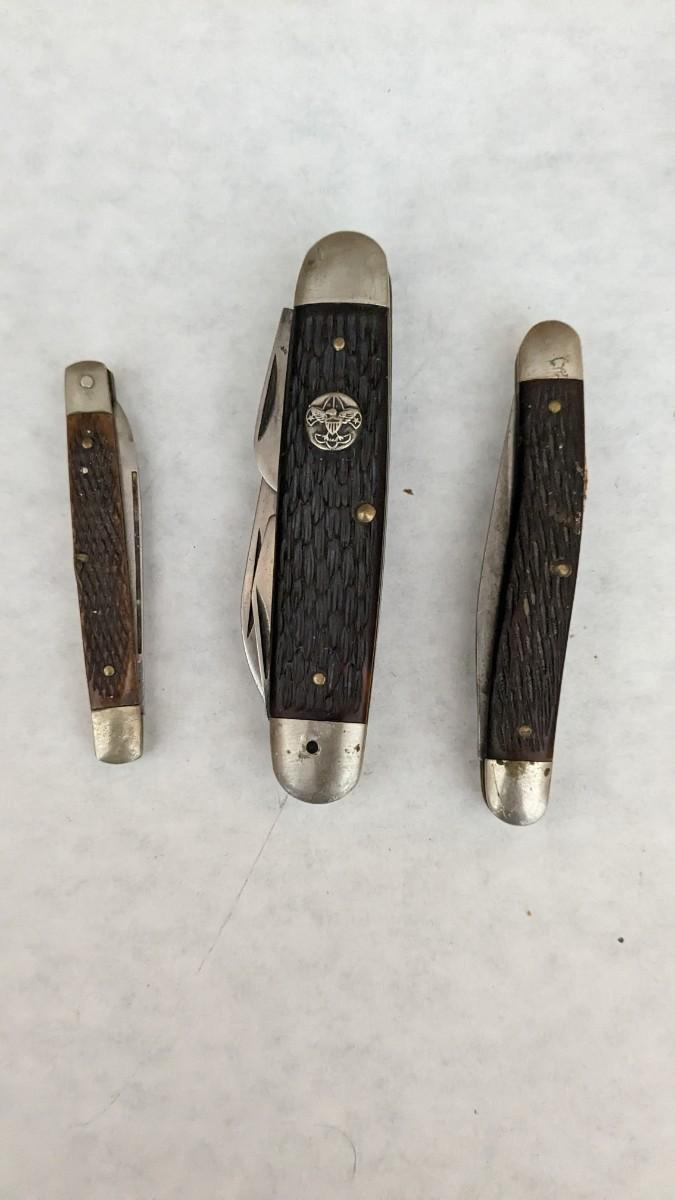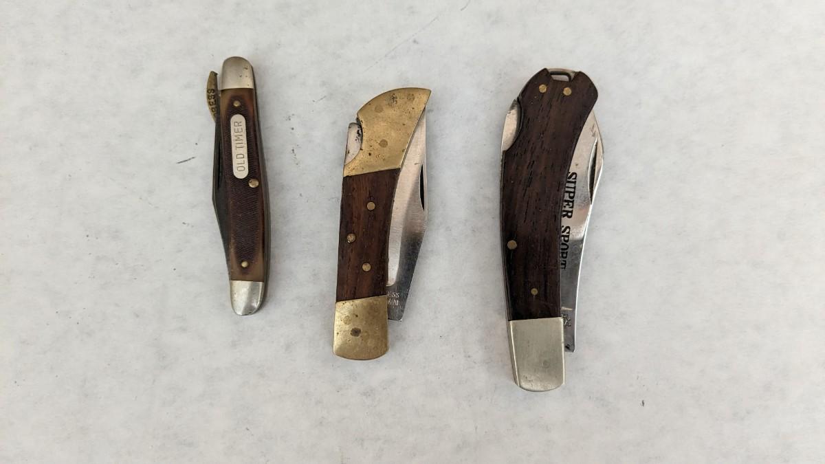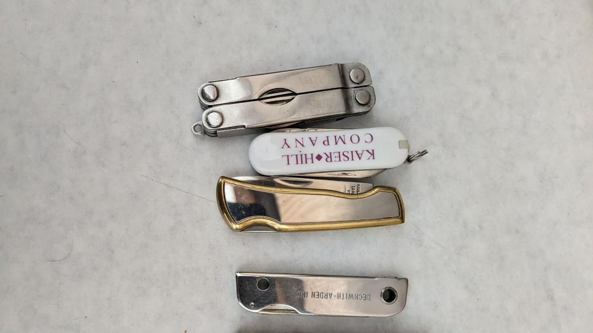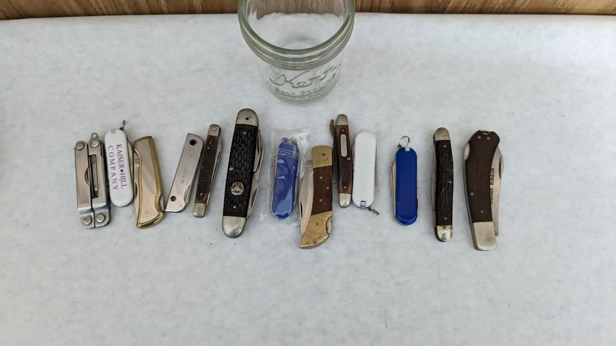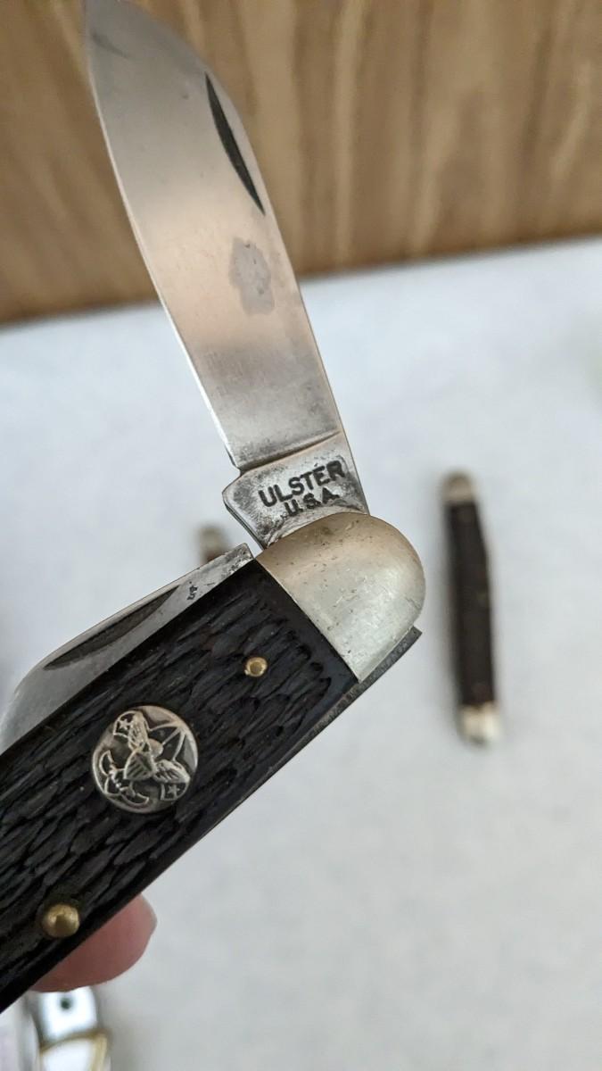 if you're looking to bring a knife to the gun fight, this is the lot for you. A great assortment of multi decade pocket knives, multi tools, a nice tooled leather holster, and great set of vintage iron knuckles. bdrm2