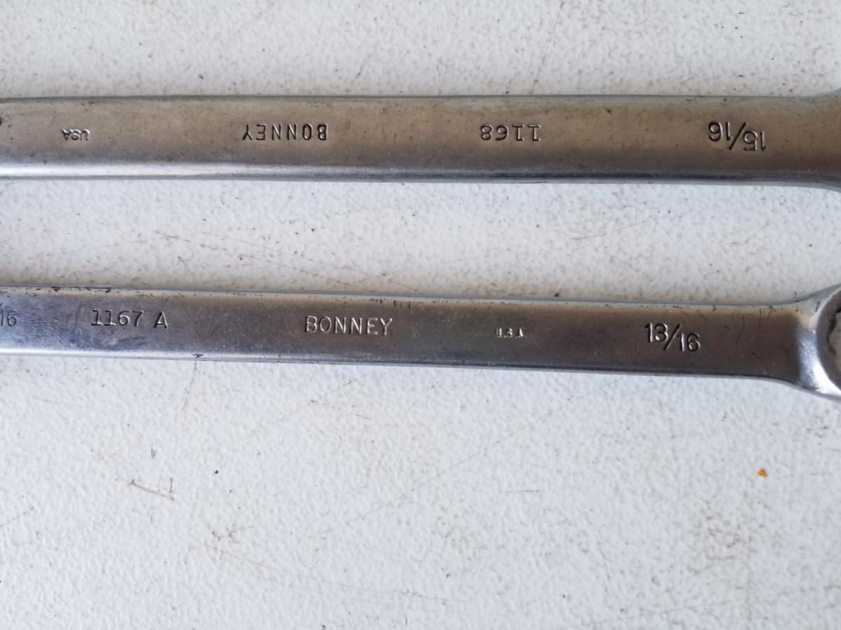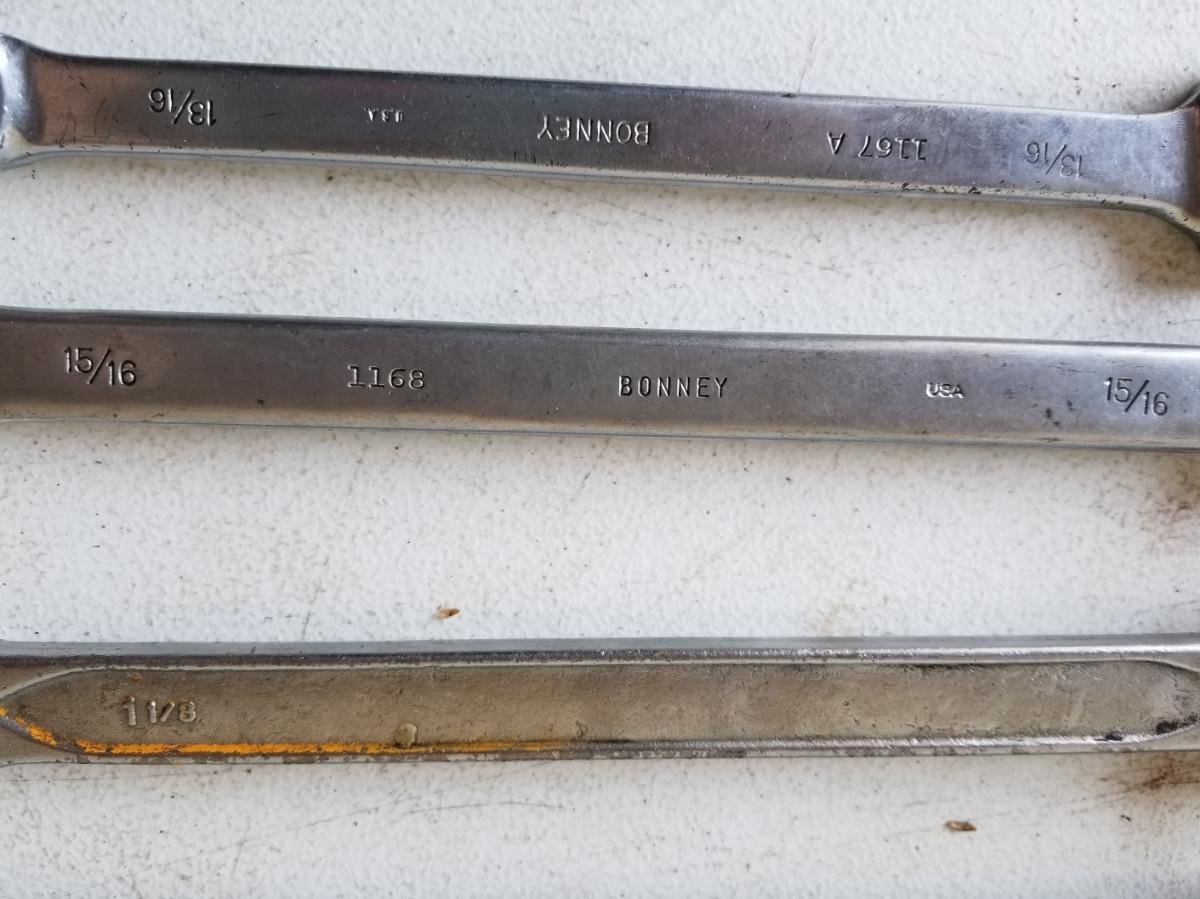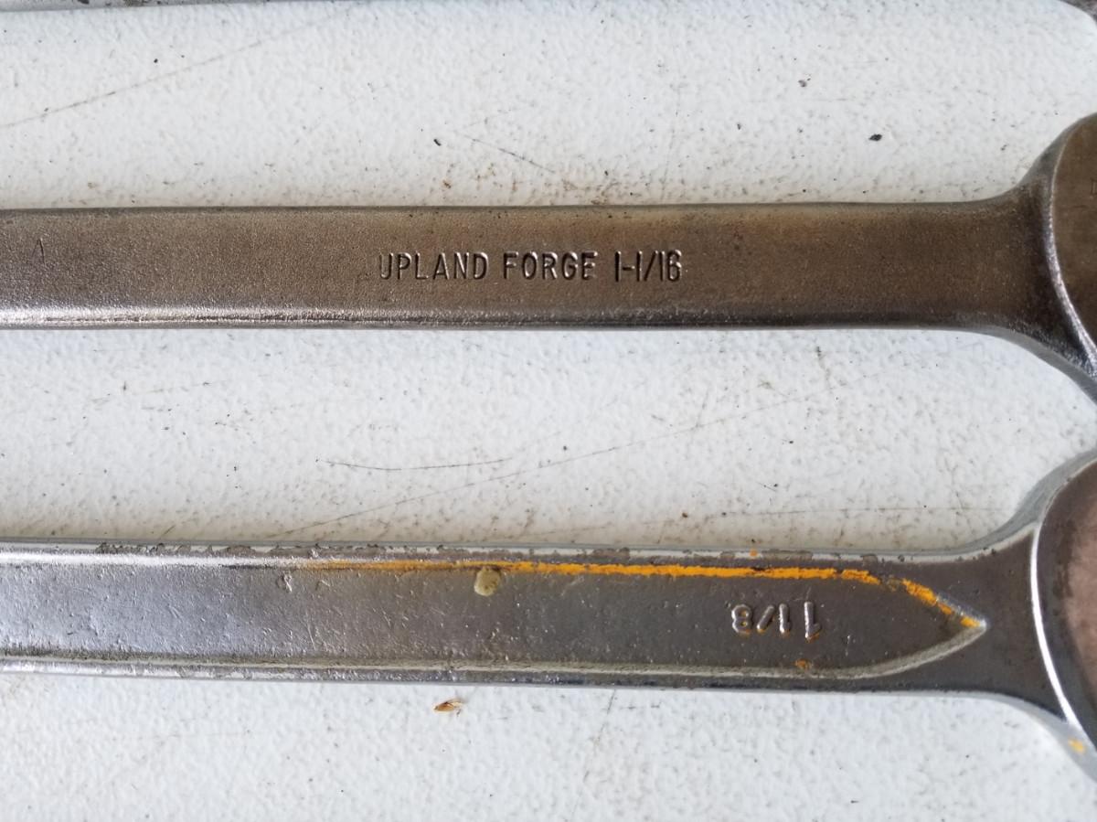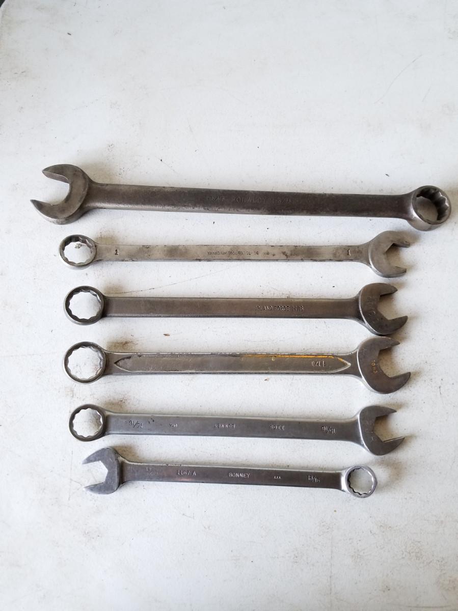 6- 12pt combination wrenches from various manufacturers. Includes sizes 1-5/16", 1-1/8", 1-1/16", 1", and 15/16",