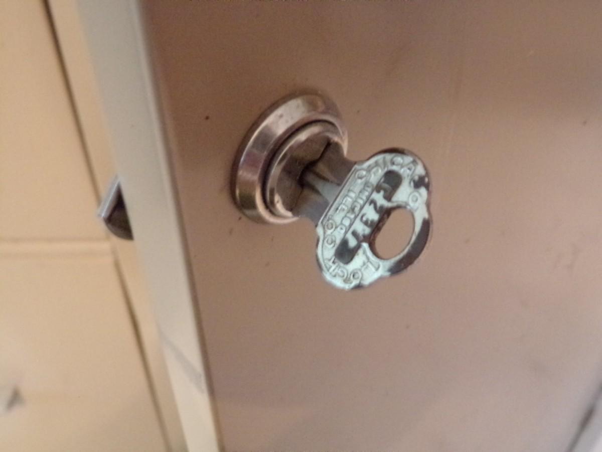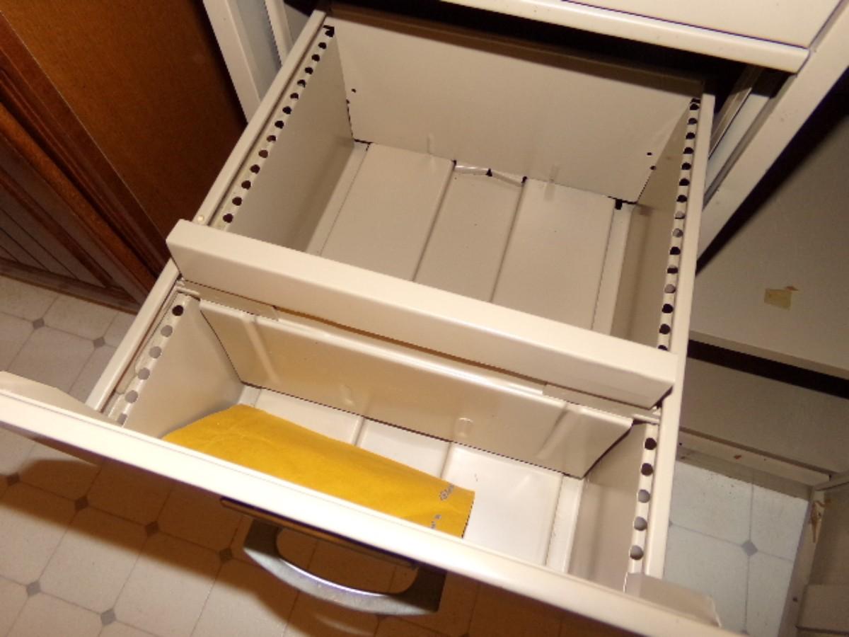 Combo file cabinet w/ small safe space. Larger door has a key. Sturdy ALL metal construction. 3 file drawers. About 38" tall x 29" wide x 16" deep.