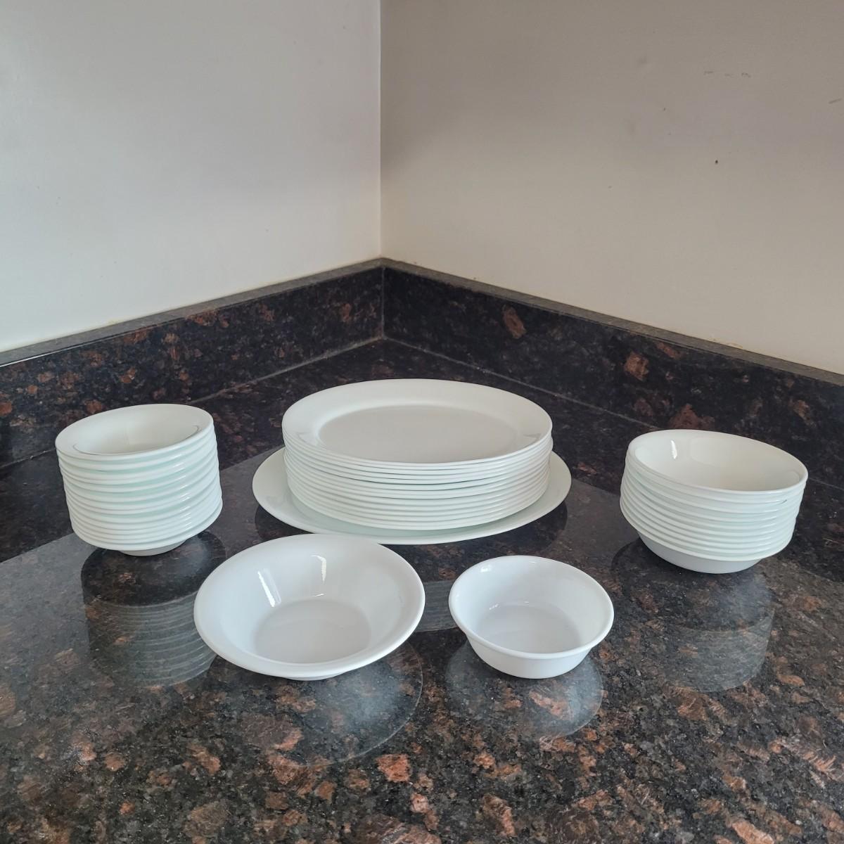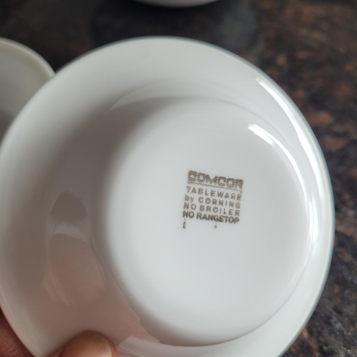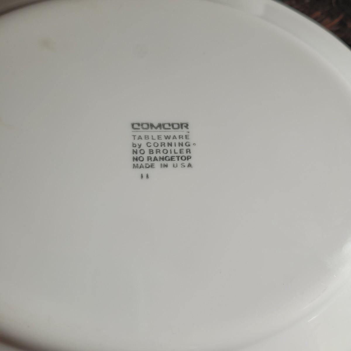 This lot of Comcor and Corelle dishes by Corning includes thirteen oval dishes, one large oval dish, one medium bowl, ten small bowls, fourteen extra small bowls and one small wide bowl. Large oval dish measures approximately 11.5” x 9”. Shipping available.