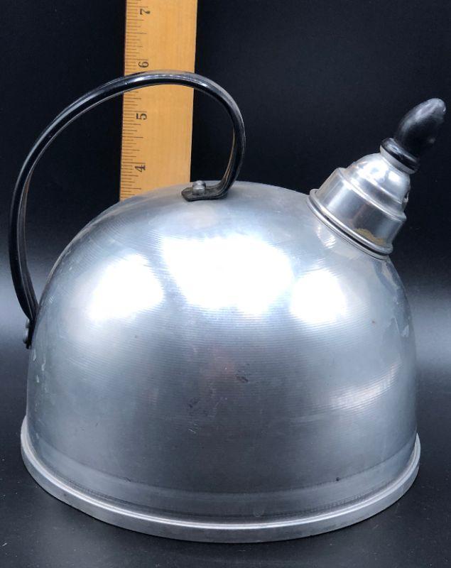 Comet Aluminum tea kettle. Made for the stove top. Previously used, there is a few dings, but in good vintage condition.