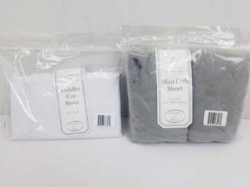 Comfort for Kids: Toddler Cot Sheet White & 2 pc Gray Mini Crib Sheets - New