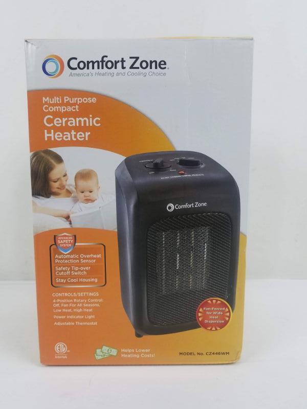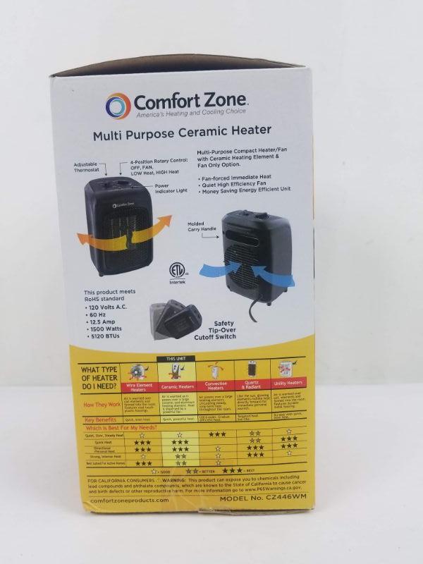 Comfort Zone Multi Purpose Compact Ceramic Heater. Open Box, Tested, Works - New