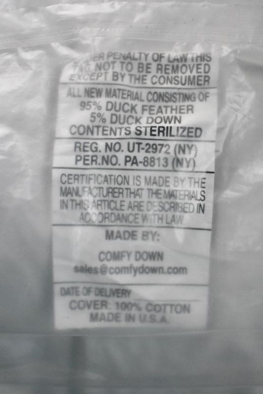 Comfy Down Pillow, 20" x 20" - New
