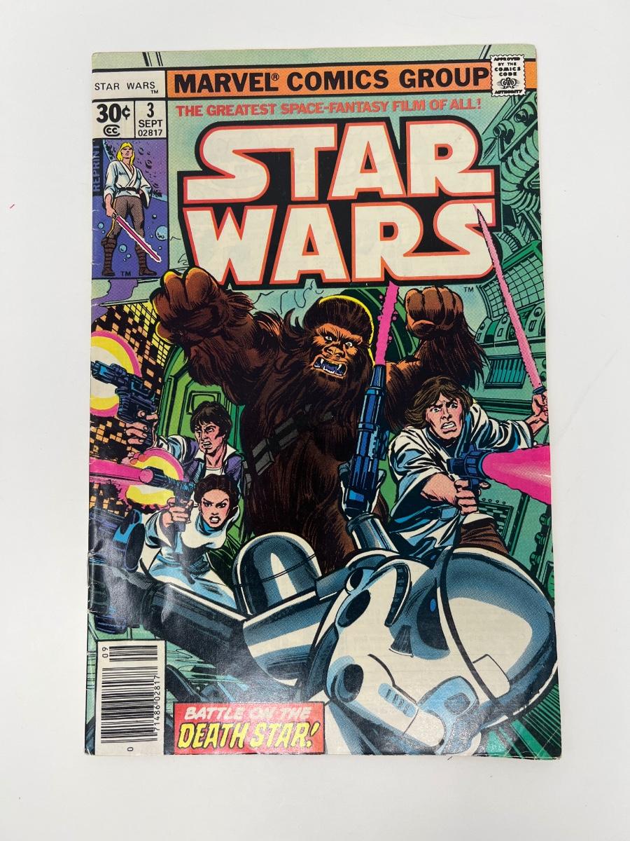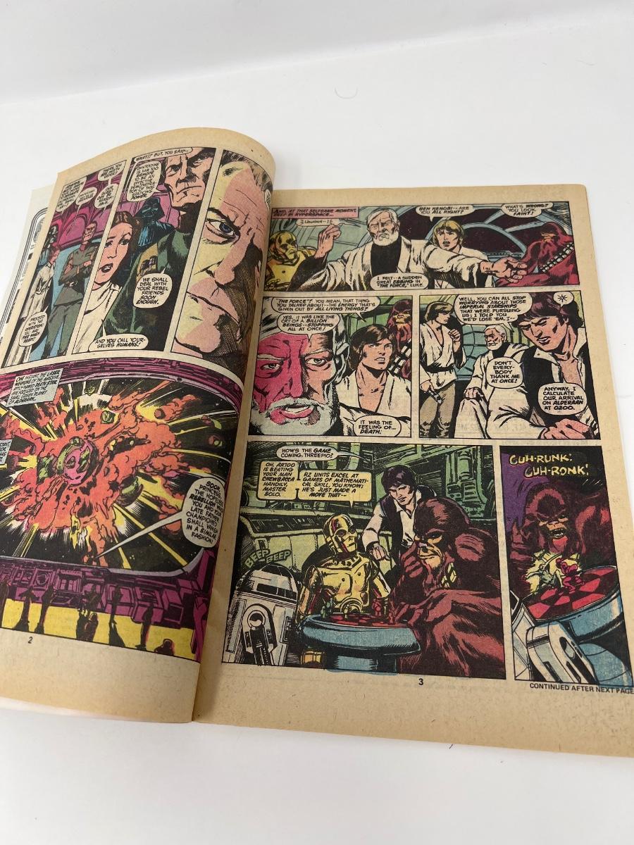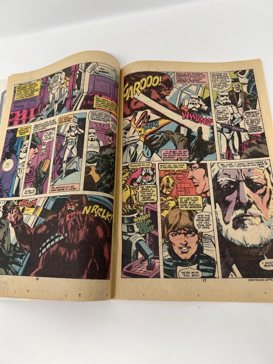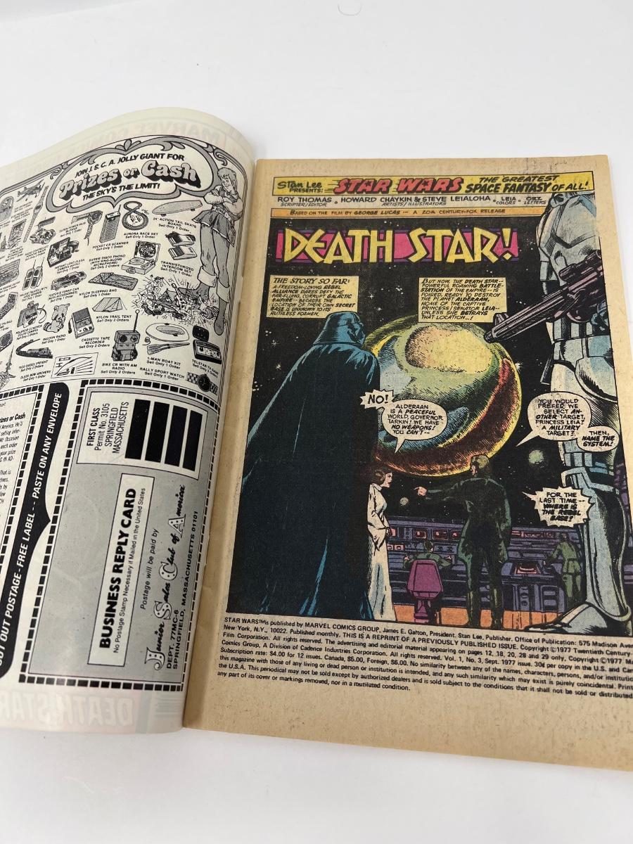 Star Wars, Battle on the Death Star, Marvel, September 1977, general aging to pages (no major issues, slight fold on back cover, crease in corner bottom right of cover, otherwise great condition).