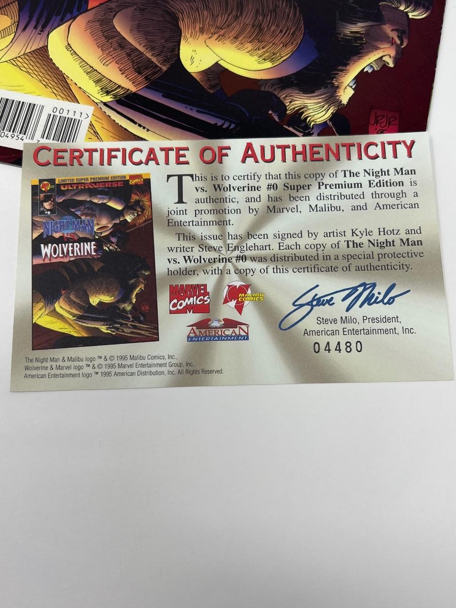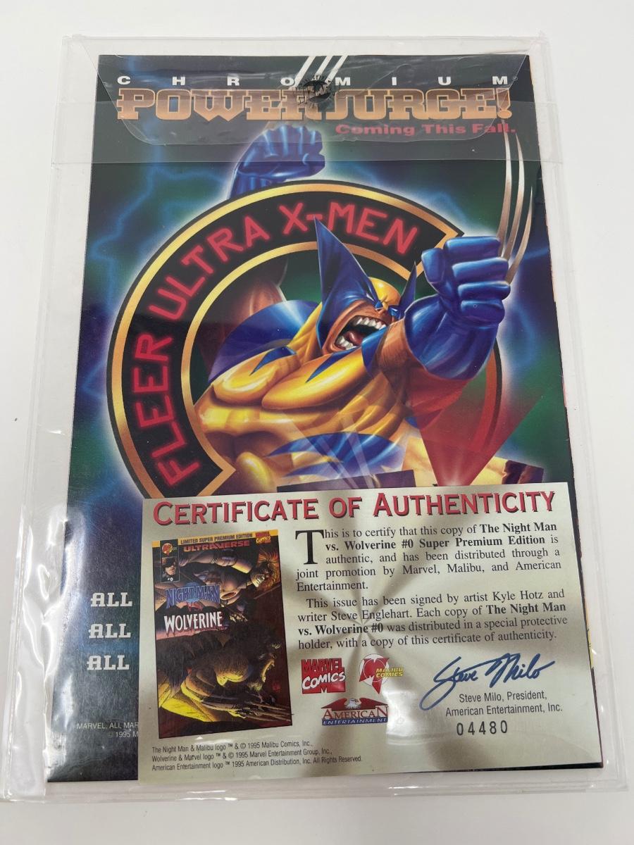 1995, #0, Ultraverse The Nightman vs. Wolverine, Limited Super Premium Edition, signed by artist Kyle Hotz and writer Steve Englehart. #4480, has protective cover. Appears to be in like new condition.
