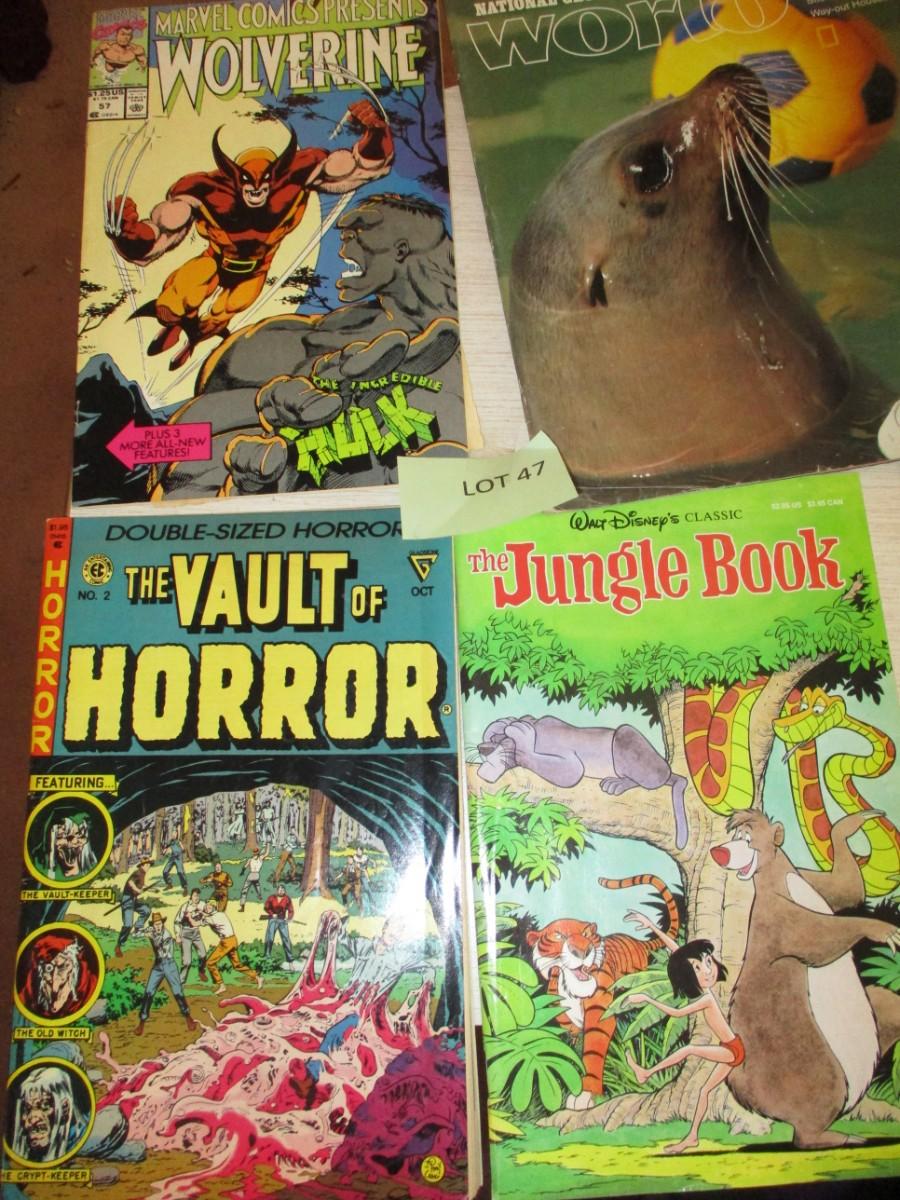 Jungle Book comic. The Vault of Horror. wolverine. Nat'l Geographic World. Great condition