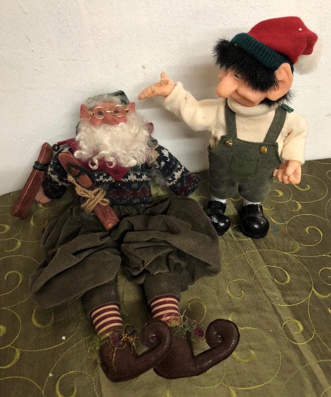 Good condition on this comical pair of Christmas time figures...Santa and an Elf...