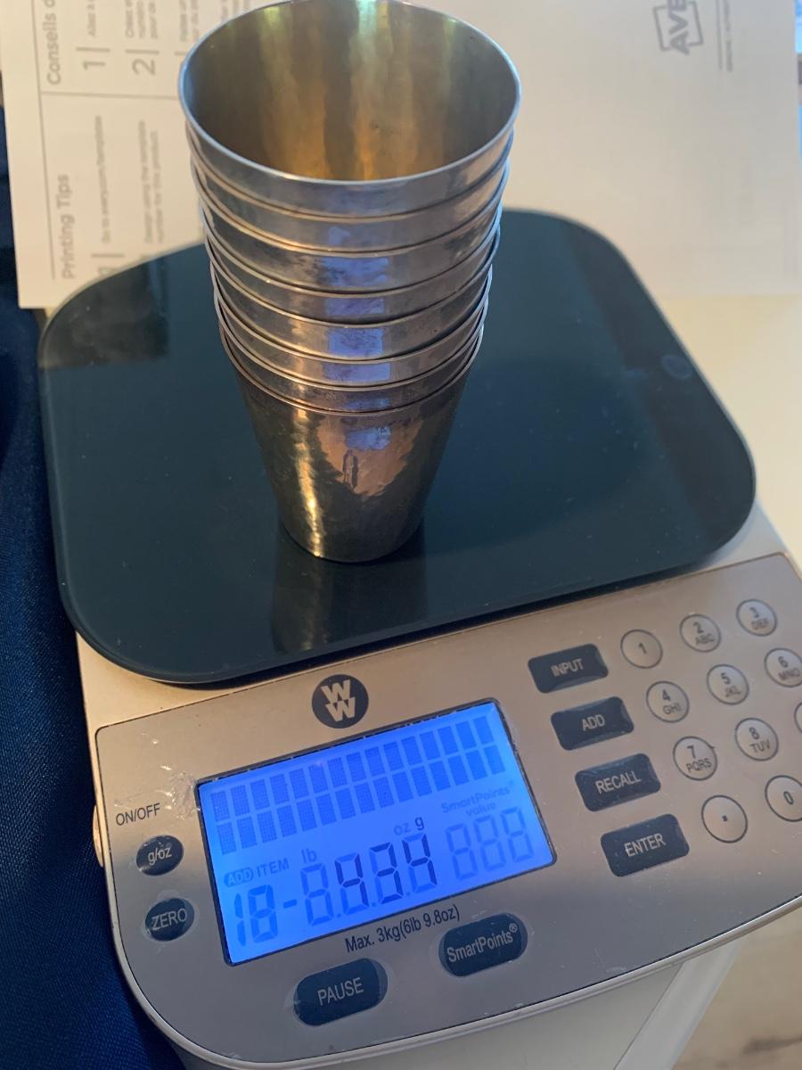 Each weighs 54 grams - Total weight for the lot of 8 cups - 434 grams.