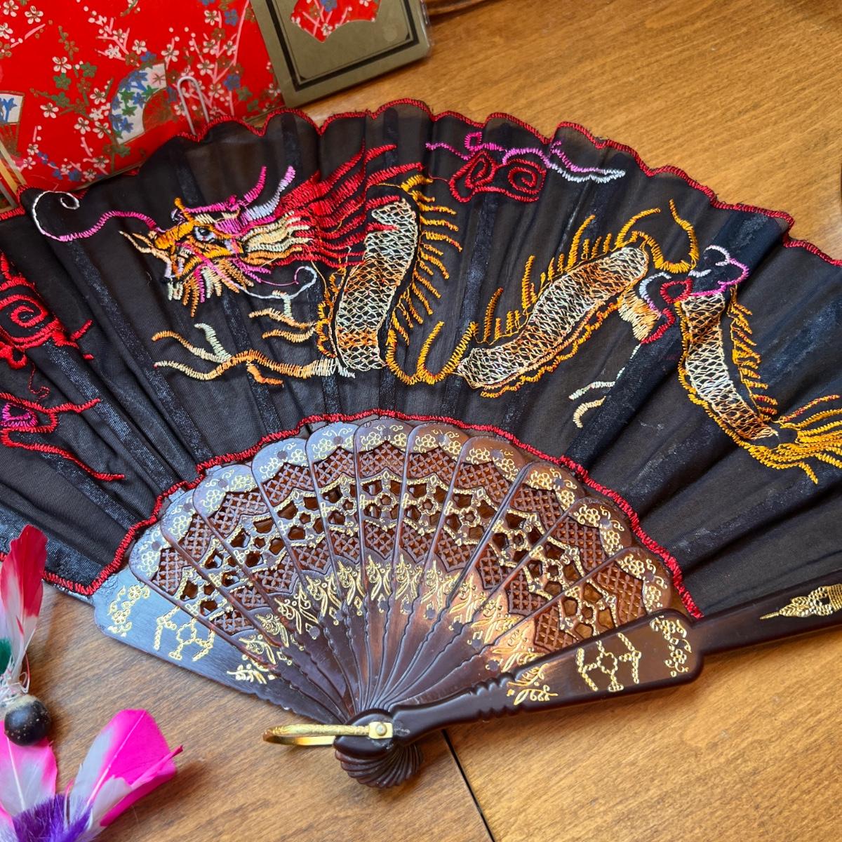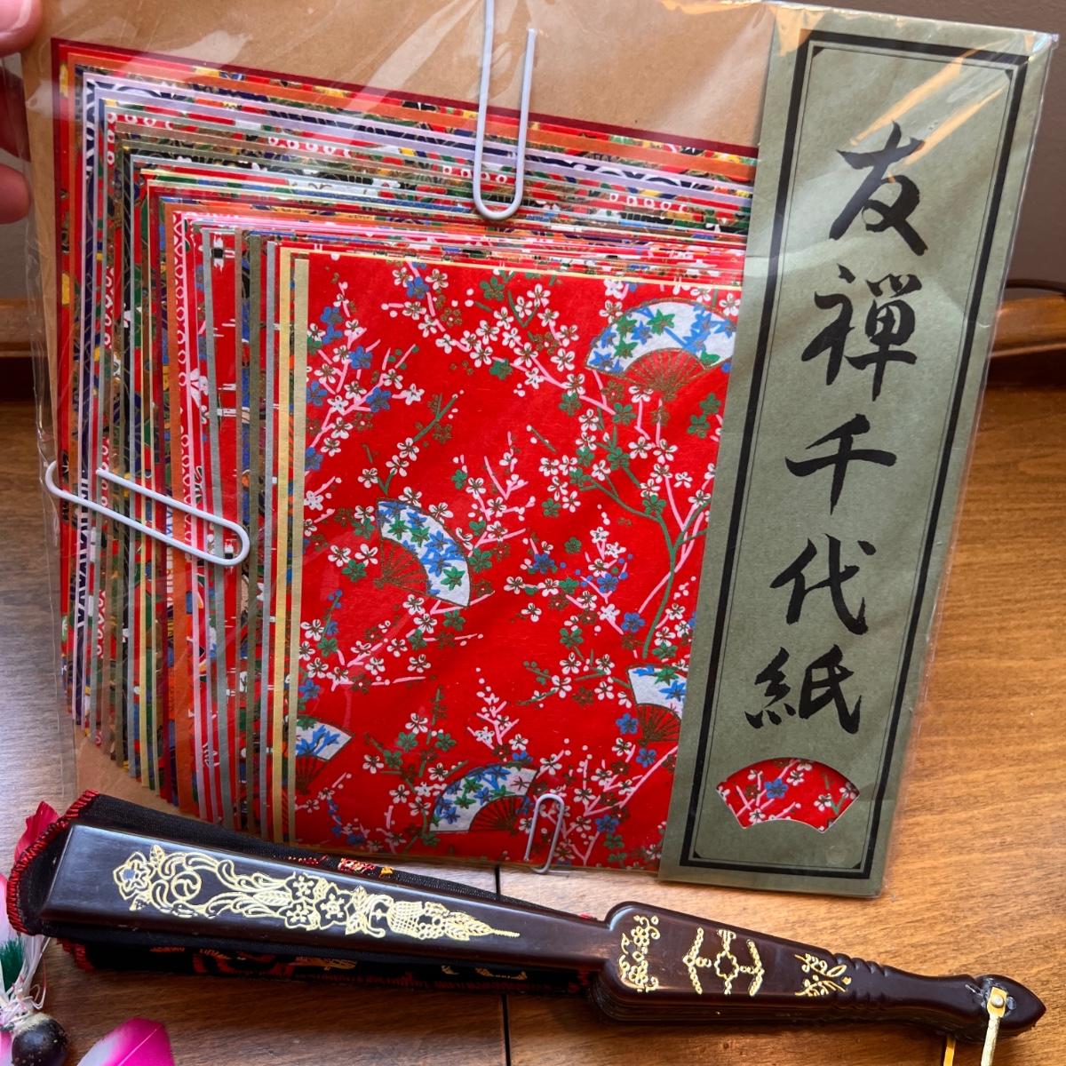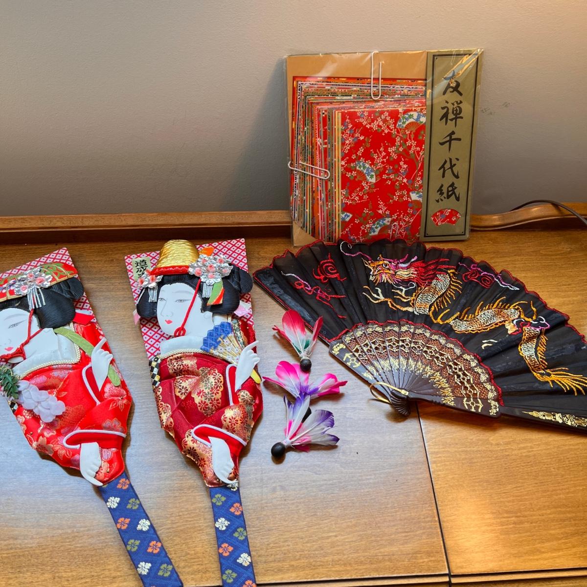 Vintage Japanese Hogoita Set, Japanese Fan, Origami Paper